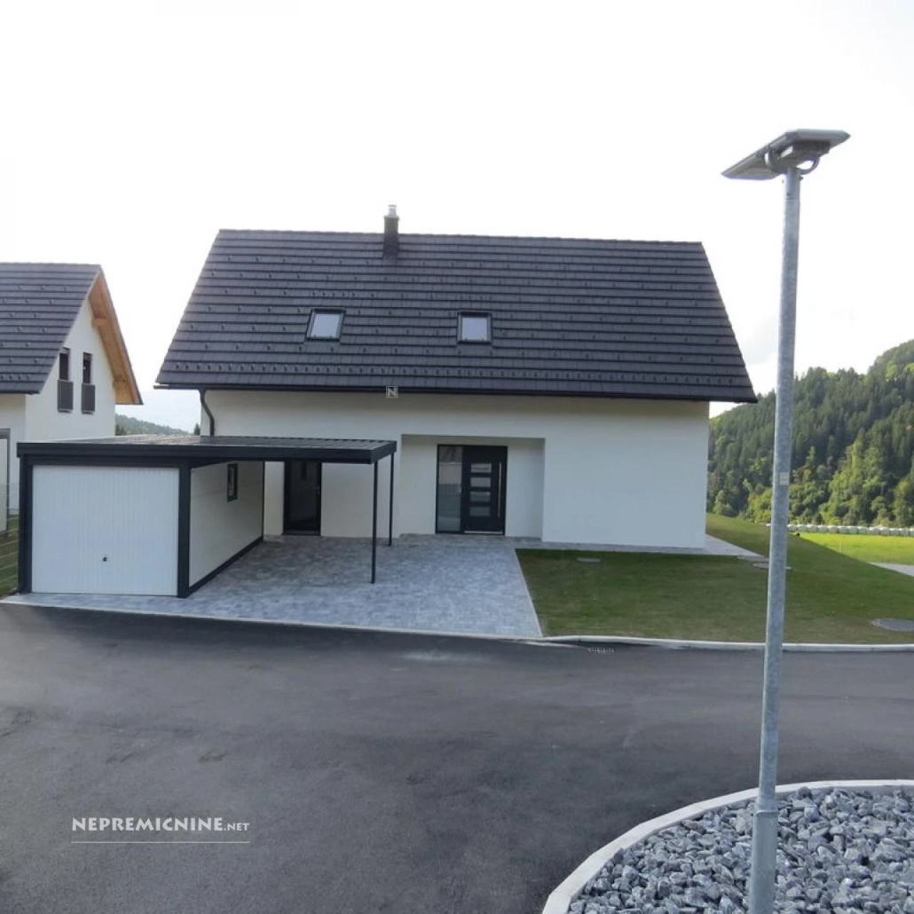 Deze prachtige nieuwbouw woning, gelegen in het rustige en groene Legen, biedt een unieke kans om te wonen in een omgeving omgeven door bossen en natuur. De woning is gebouwd tot de derde verlengde bouwfase en biedt een moderne en duurzame constructie met siporex en een TONDACH dak. De woning beschikt over een eigen zuiveringsinstallatie en de hoofdaansluitingen voor water en elektriciteit zijn al geïnstalleerd. De woning heeft een oppervlakte van 200,46 m² en staat op een perceel van 883 m². Het biedt drie slaapkamers, een badkamer, een atrium, een terras en een parkeerplaats. De locatie biedt een prachtig uitzicht op de omliggende bergen zoals Uršlja Gora, Peca en Raduha. De woning is ideaal voor natuurliefhebbers en biedt gemakkelijke toegang tot het toeristische centrum KOPE. De regio Koroška staat bekend om zijn prachtige landschappen en biedt tal van recreatieve mogelijkheden. In de buurt vindt u winkels, restaurants en andere voorzieningen. De woning is goed bereikbaar via een geasfalteerde weg en biedt een rustige en zonnige locatie.