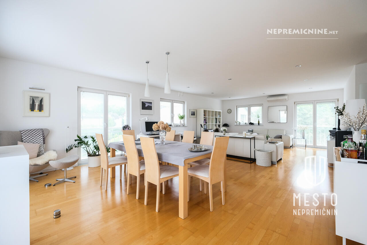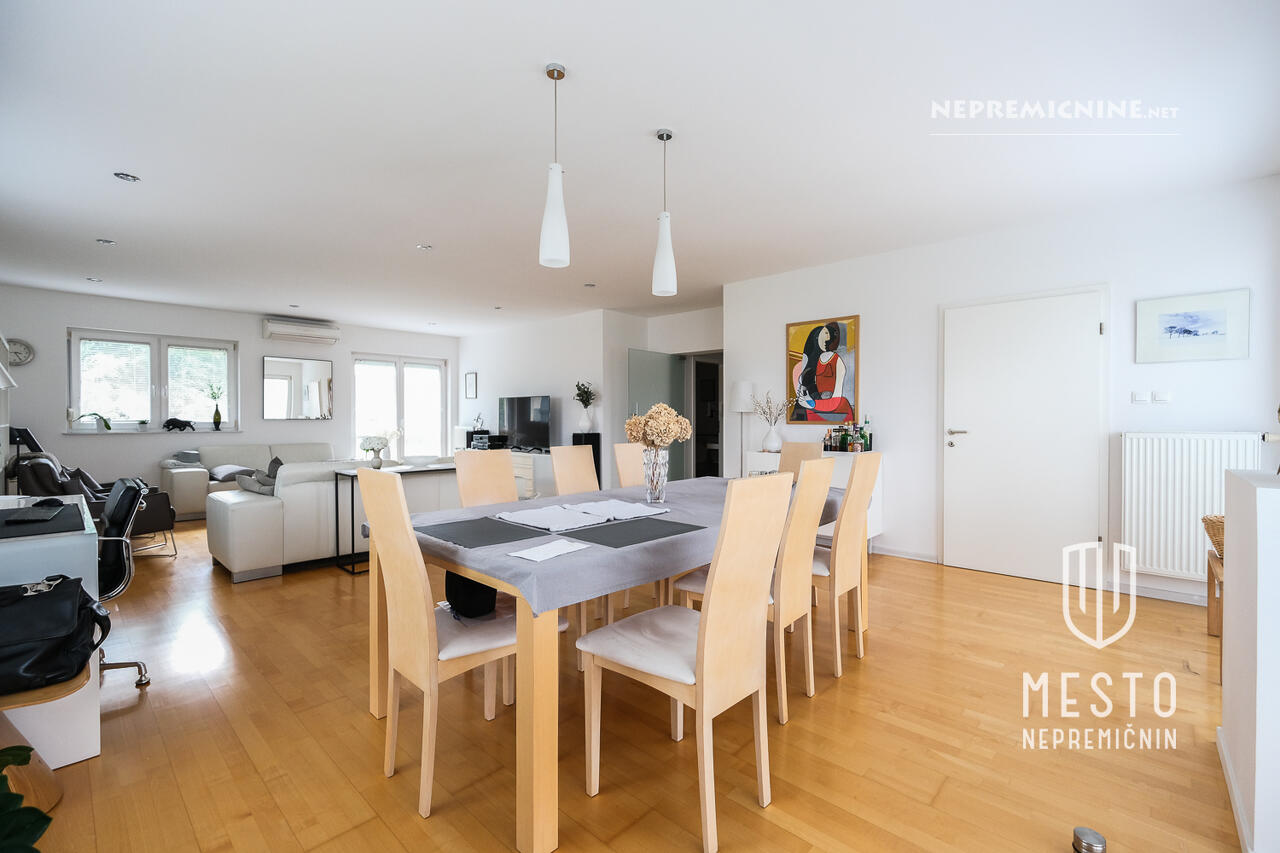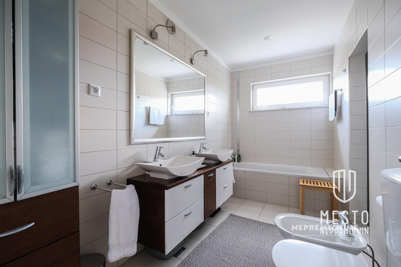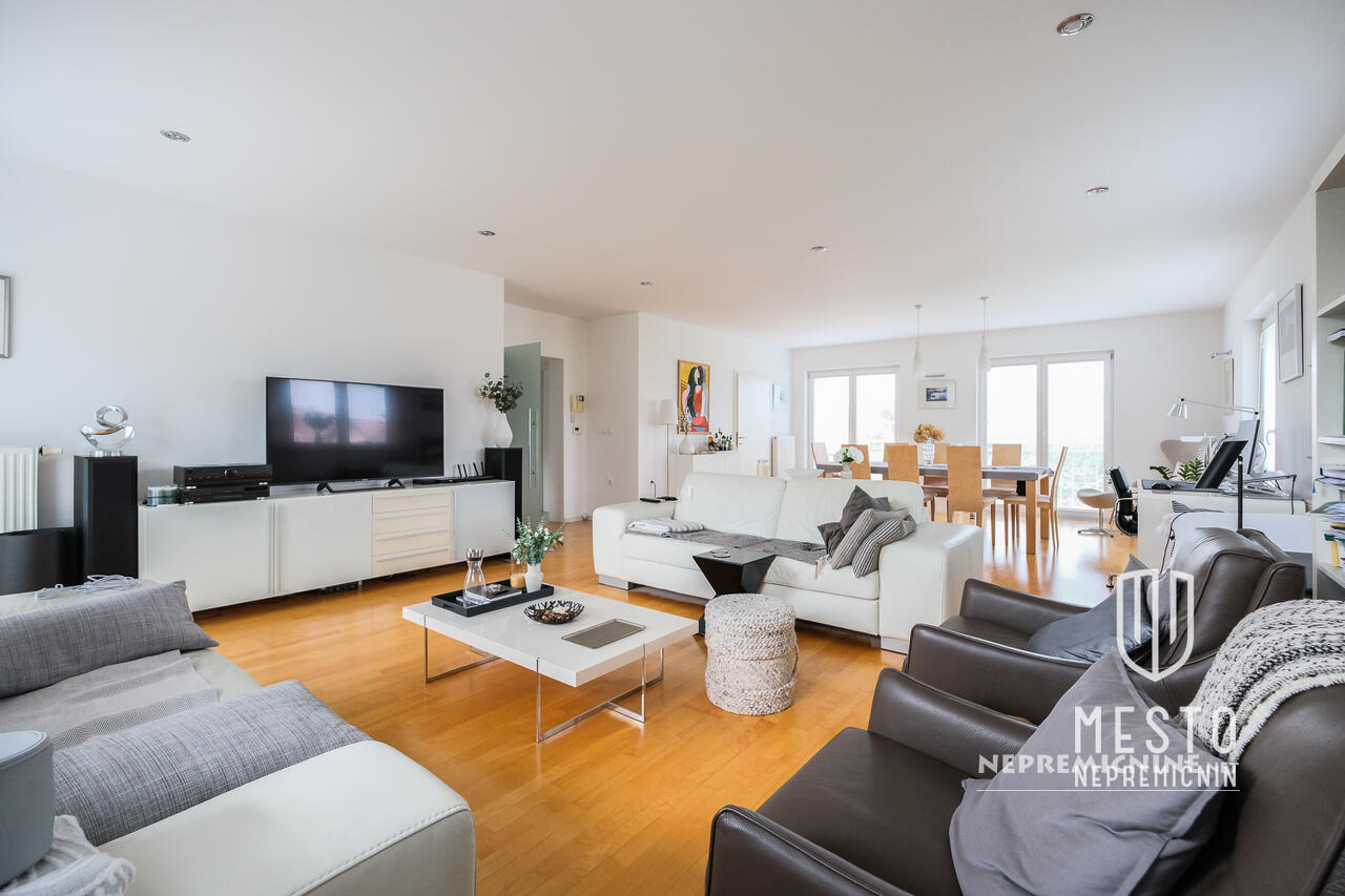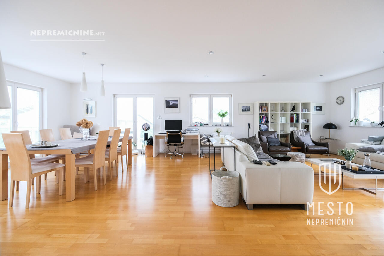 Deze prachtige, goed onderhouden en volledig gerenoveerde vrijstaande woning bevindt zich op een rustige locatie in Brod, Ljubljana. De woning, gebouwd in 1972 en volledig gerenoveerd in 2006, biedt de mogelijkheid om te worden omgebouwd tot drie aparte appartementen. De woning strekt zich uit over drie verdiepingen en beschikt over hoogwaardige materialen en apparatuur. De begane grond omvat een garage voor drie voertuigen, een kantoor, een badkamer en technische ruimtes. De eerste verdieping is recentelijk volledig gerenoveerd en de tweede verdieping biedt een appartement. De woning heeft een ruime tuin die volledige privacy biedt, evenals een terras en een atrium. De locatie biedt alle voordelen van het stadsleven met gemakkelijke toegang tot de natuur, zoals de nabijgelegen Šmarna Gora. In de buurt zijn er ook een bushalte, basisschool, kleuterschool, postkantoor, apotheek en winkels. De woning is direct beschikbaar voor bewoning.