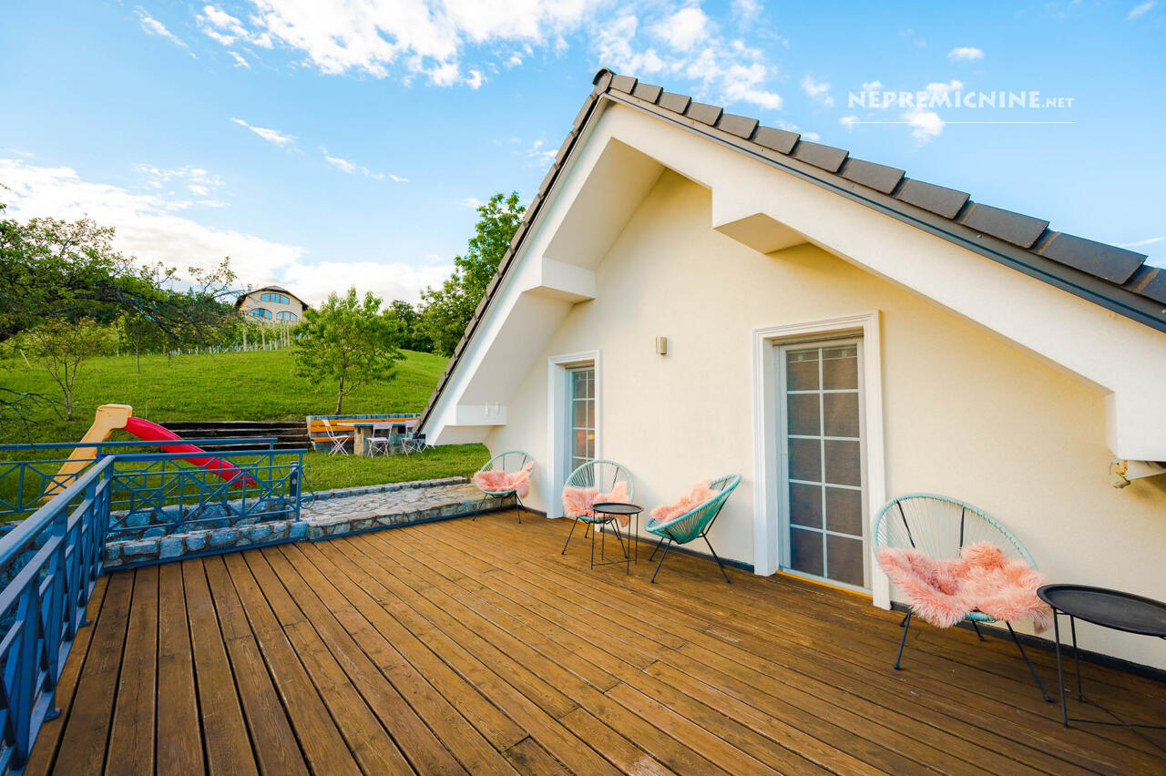 In het pittoreske dorpje Gorenje Dole, midden in de ongerepte natuur van Dolenjska, staat deze prachtige vrijstaande woning. Gebouwd in 2007 en gerenoveerd in 2010, biedt deze woning een perfecte mix van moderne luxe en landelijke charme. Met een woonoppervlakte van 150 m² en een perceel van 1873 m², is er voldoende ruimte voor ontspanning en recreatie. De woning beschikt over twee slaapkamers, een ruime woonkamer en een volledig uitgeruste keuken, ideaal voor comfortabel wonen. De badkamer is voorzien van een grote badkuip en hoogwaardige afwerkingen zoals marmer uit Carrara. De woning is uitgerust met vloerverwarming, een warmtepomp en zonnecollectoren voor energie-efficiëntie. Buiten vindt u een houten terras met jacuzzi en een prachtig uitzicht op de groene omgeving. De regio biedt tal van recreatiemogelijkheden zoals wandel- en fietspaden, wijngaarden en historische bezienswaardigheden. Nabijgelegen thermale baden en golfclubs maken het aanbod compleet. Deze woning is een zeldzame kans voor wie op zoek is naar een moderne, comfortabele woning in een rustige, natuurlijke omgeving met potentieel voor lucratieve toeristische verhuur.
