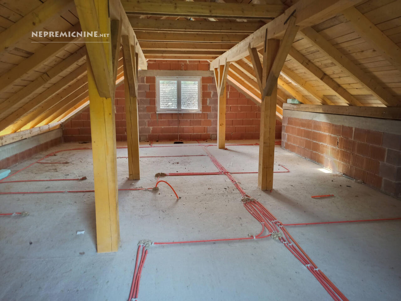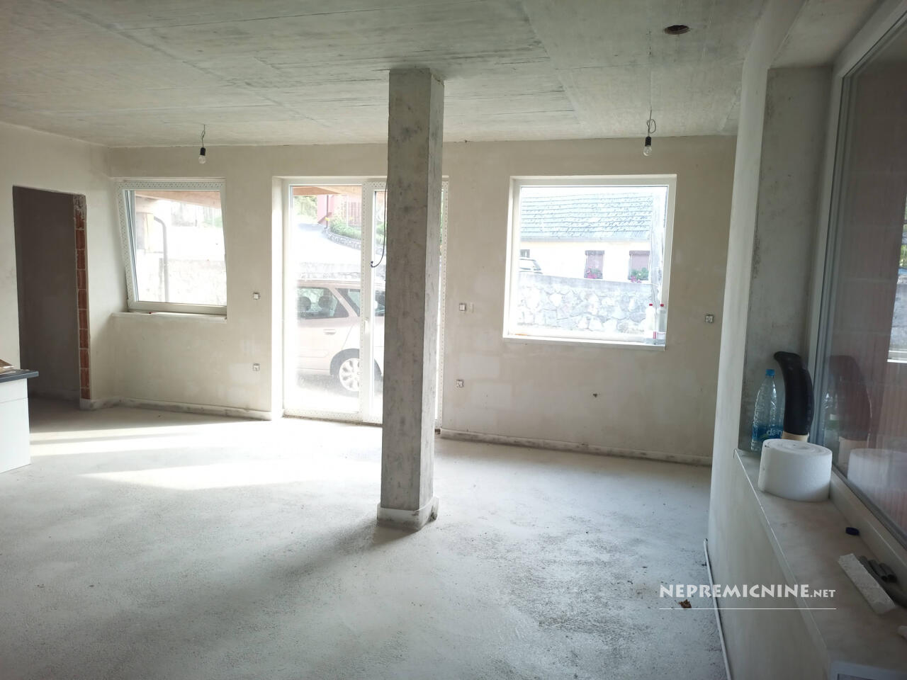Deze bijna voltooide, energiezuinige vrijstaande woning in Gabrje biedt een unieke kans voor kopers die op zoek zijn naar een moderne en functionele leefruimte. Met een netto oppervlakte van 184 m² en een perceel van 966 m², biedt deze woning een ruime indeling met veel natuurlijk licht dankzij de hoge plafonds en grote ramen. De begane grond beschikt over een open woonruimte met een keuken, eetkamer en woonkamer, evenals een grote slaapkamer met inloopkast, een extra kamer met toegang tot de tuin of terras, en een badkamer. De mansarde is momenteel een open ruimte die kan worden omgebouwd tot een atelier, oefenruimte of zelfs een apart appartement. De woning is voorzien van alle moderne gemakken, waaronder vloerverwarming, snelle internetverbinding en een regenwateropvangsysteem. Gelegen op slechts 15 minuten van Novo mesto, biedt de locatie rust en privacy, terwijl het toch dicht bij alle voorzieningen is. De regio Dolenjska staat bekend om zijn prachtige natuur en wijngaarden, en biedt tal van recreatieve mogelijkheden zoals wandelen en fietsen. De nabijheid van Novo mesto zorgt voor gemakkelijke toegang tot winkels, restaurants en openbaar vervoer.
