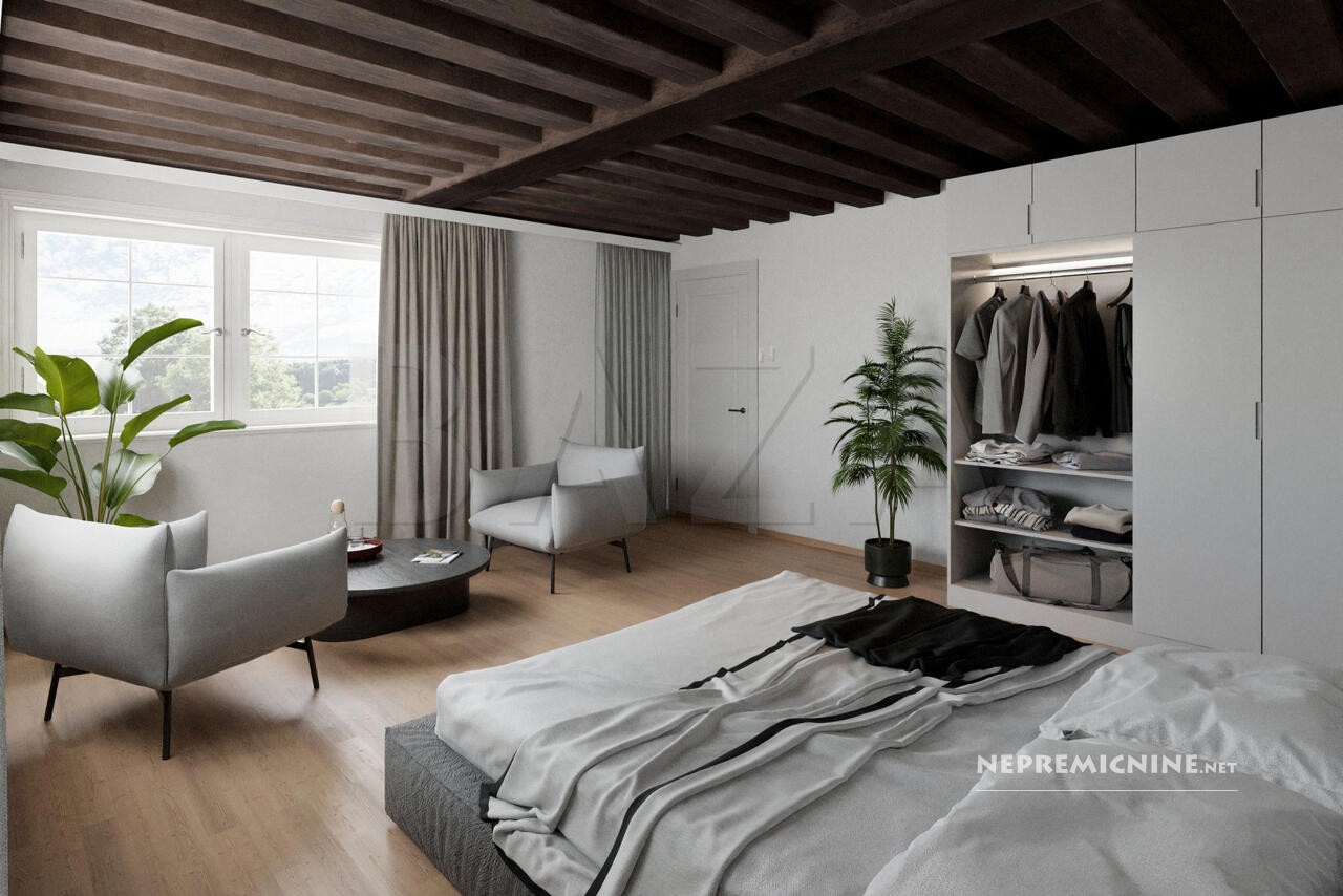 De woning is ideaal voor gezinnen en biedt een rustige en zonnige locatie in de gemeente Šentilj, met snelle toegang tot de snelweg en alle benodigde infrastructuur. De woning is verdeeld over drie verdiepingen: een kelder met een stookruimte en een wijnkelder, een begane grond met een ruime woonkamer, keuken met eetkamer en balkon, twee slaapkamers en een badkamer, en een zolder met nog twee slaapkamers. Het landgoed omvat diverse terreinen zoals bossen, akkers, weilanden, een wijngaard en een verzorgde tuin.