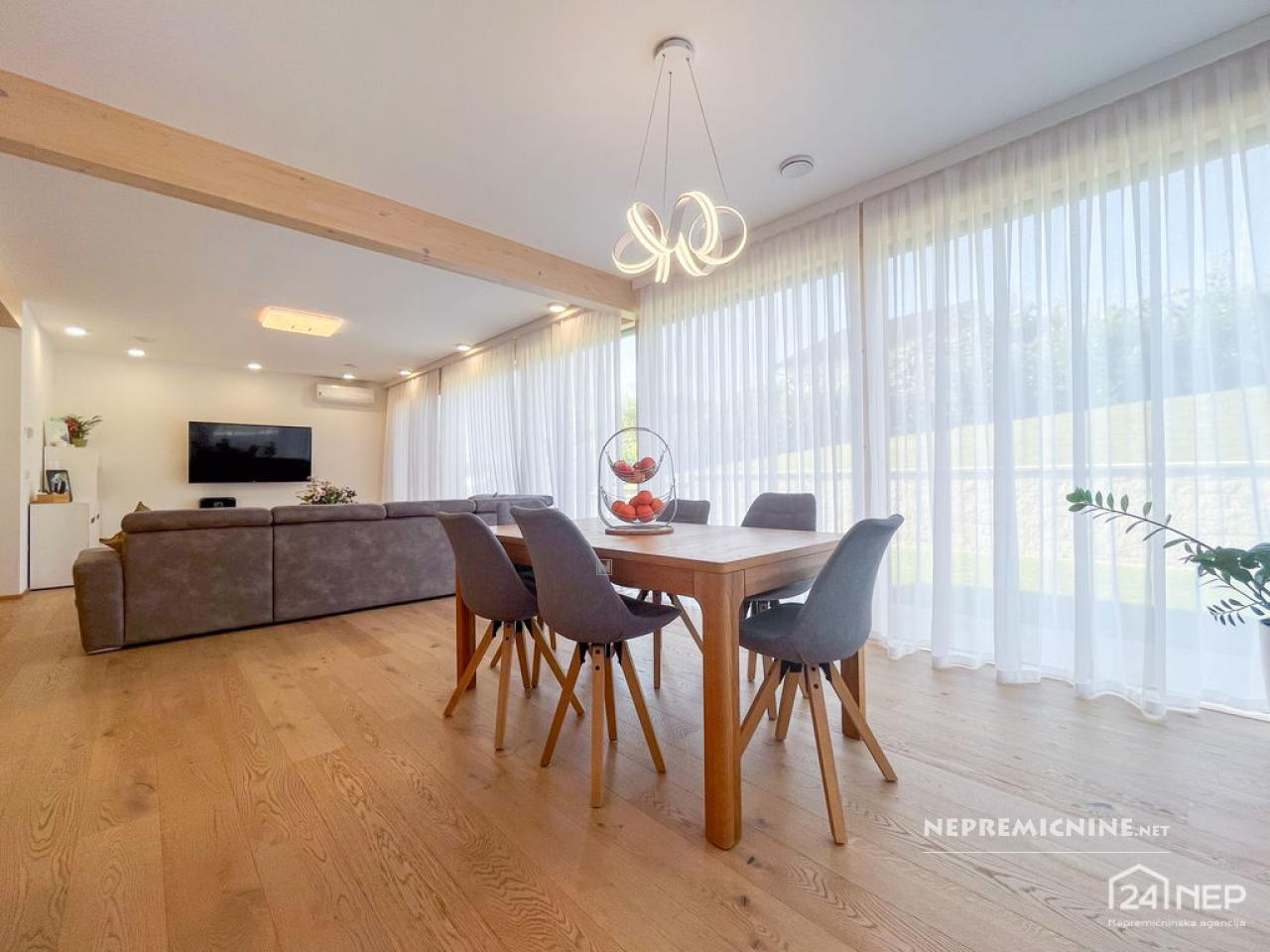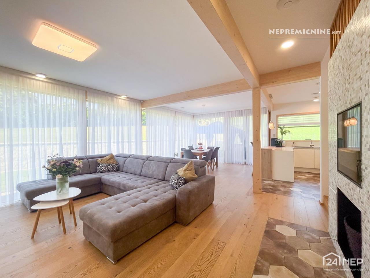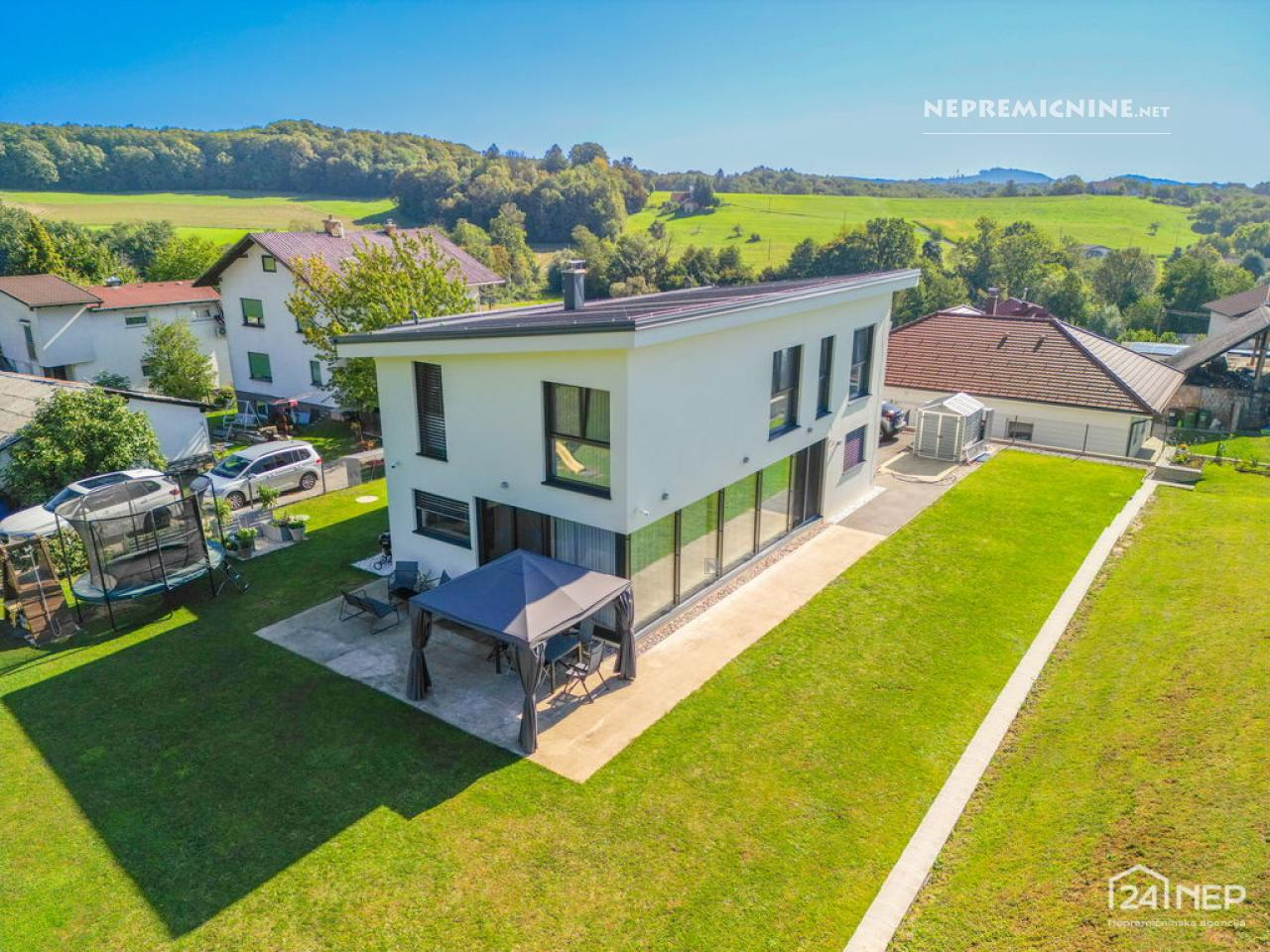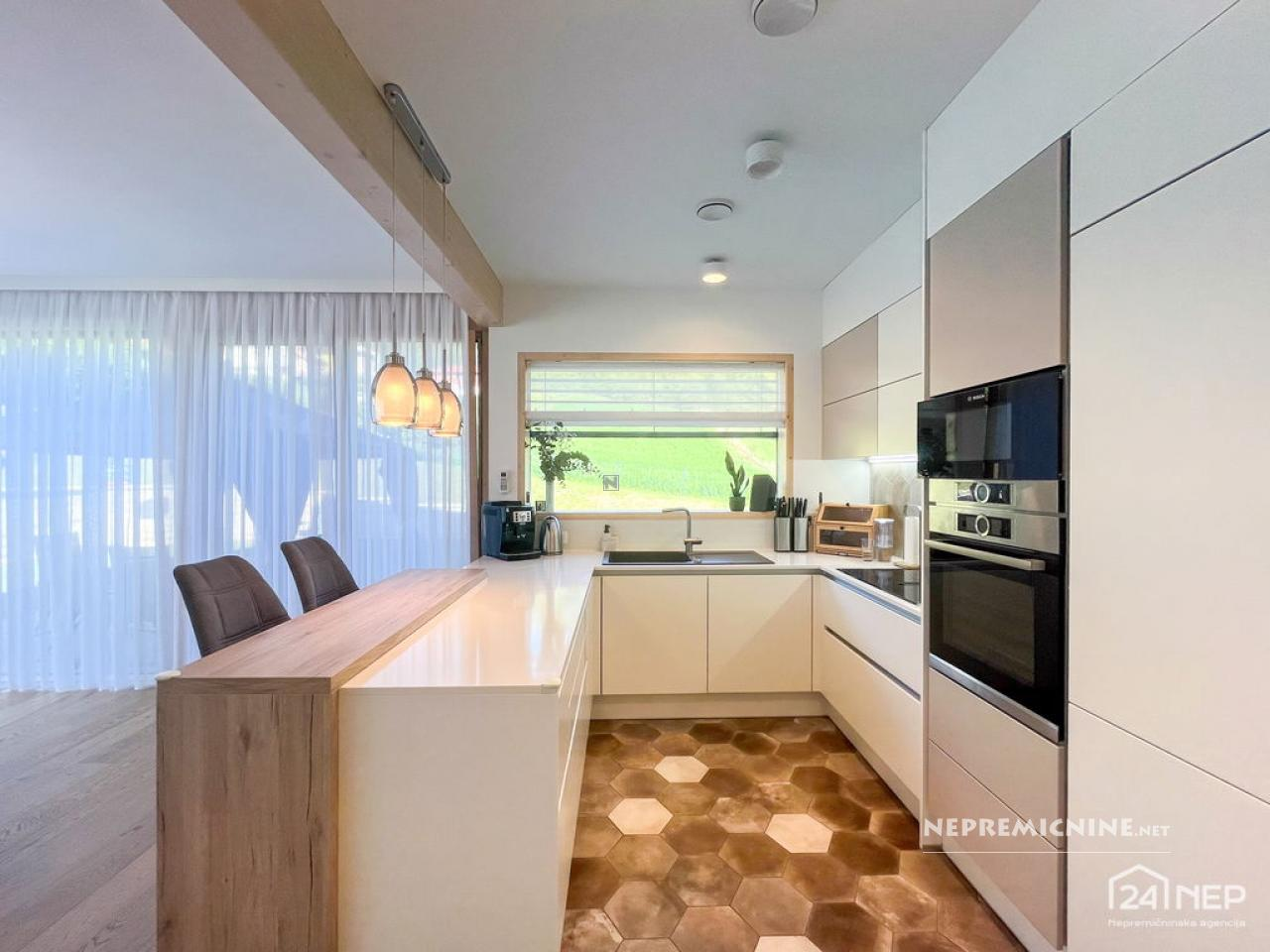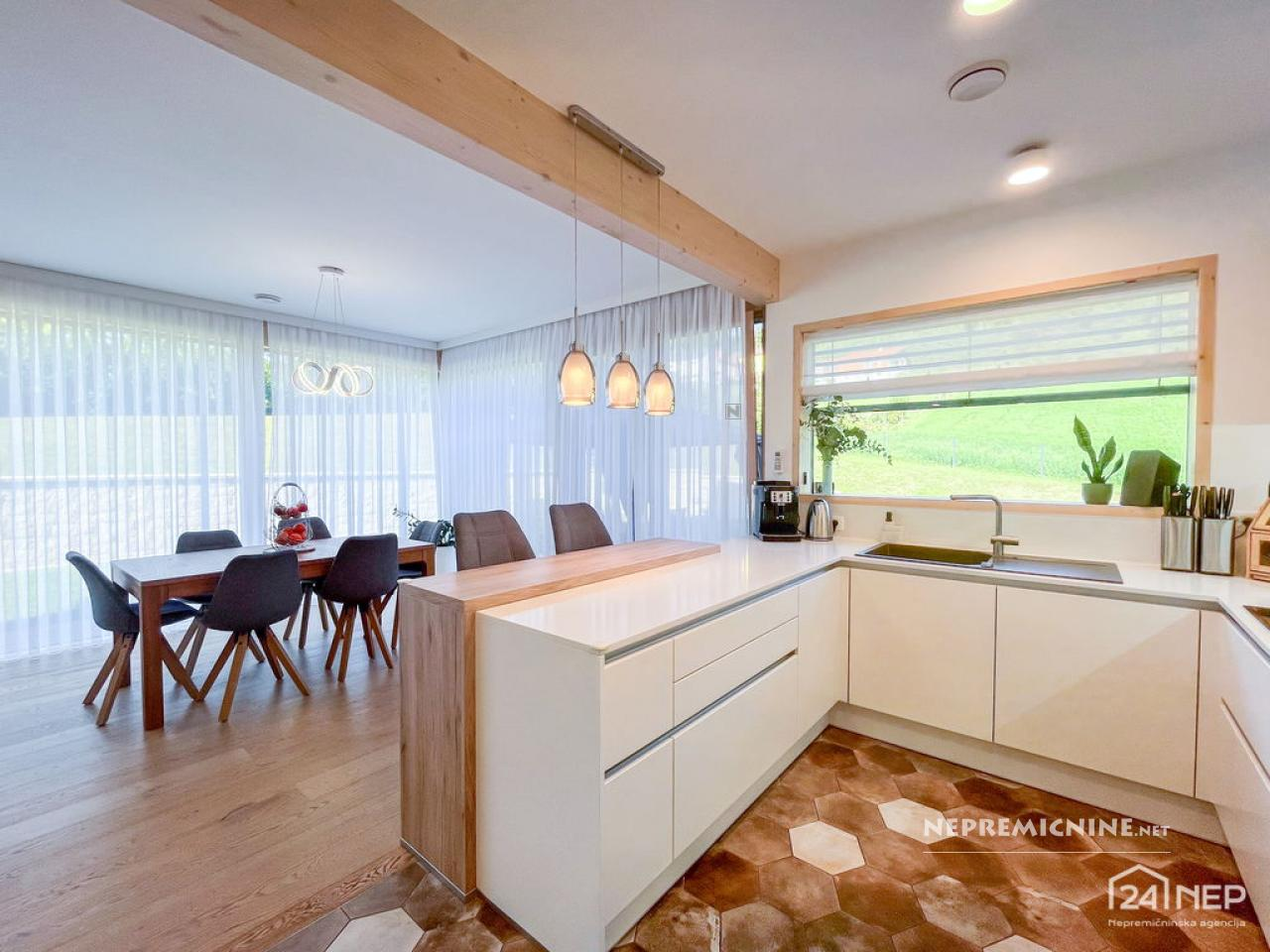 Ontdek deze uitzonderlijke vrijstaande woning in het idyllische Spodnji Duplek, gelegen op een groene, rustige en zonnige locatie, slechts 15 minuten rijden van het centrum van Maribor. Deze moderne woning, gebouwd in 2021, biedt een hoogwaardige constructie met een doordachte indeling die zorgt voor lichte, luchtige en aangename ruimtes. De skeletconstructie en glazen oppervlakken zorgen voor een overvloed aan natuurlijk licht en hoge energie-efficiëntie. De woning is uitgerust met vloerverwarming, een warmtepomp en airconditioning, en beschikt over een B1 energiecertificaat. De woning heeft een netto woonoppervlakte van 198,8 m² en een perceel van 1.146 m². De begane grond omvat een ontvangsthal, een ruimte voor een sauna, een open woonruimte met keuken, eetkamer en woonkamer met toegang tot het terras en de tuin. Op de eerste verdieping bevinden zich een ruime galerij, twee kinderkamers, een kinderkamerbadkamer, een studeerkamer en een slaapkamer met inloopkast en eigen badkamer. De woning is omgeven door groen en weilanden, wat rust, privacy en een verbinding met de natuur biedt. In de directe omgeving zijn alle benodigde voorzieningen aanwezig, waaronder een school en kleuterschool op slechts 5 minuten loopafstand. De woning biedt een uitstekende levenskwaliteit met veel licht, privacy en positieve energie, en is direct bewoonbaar zonder extra investeringen.