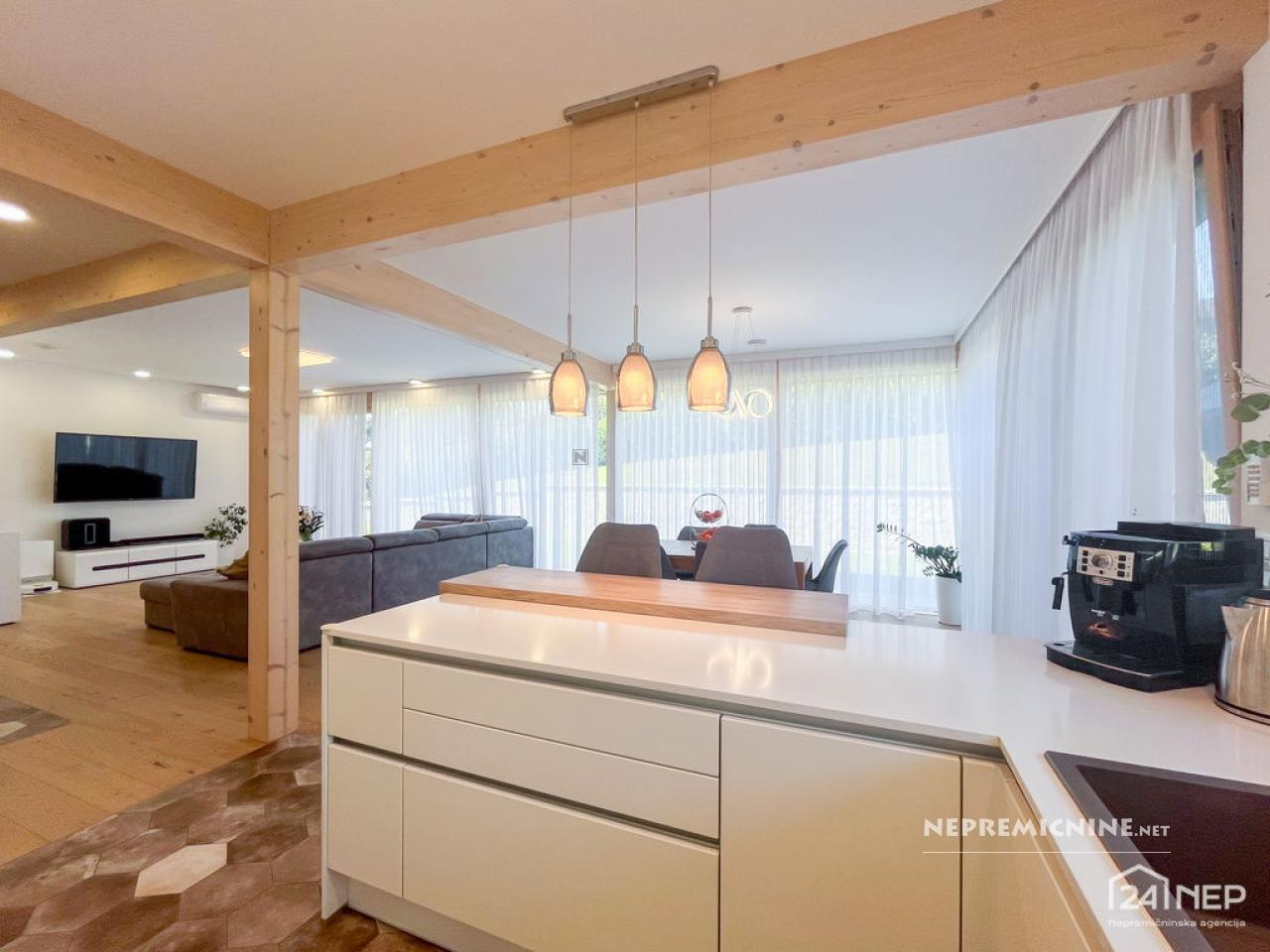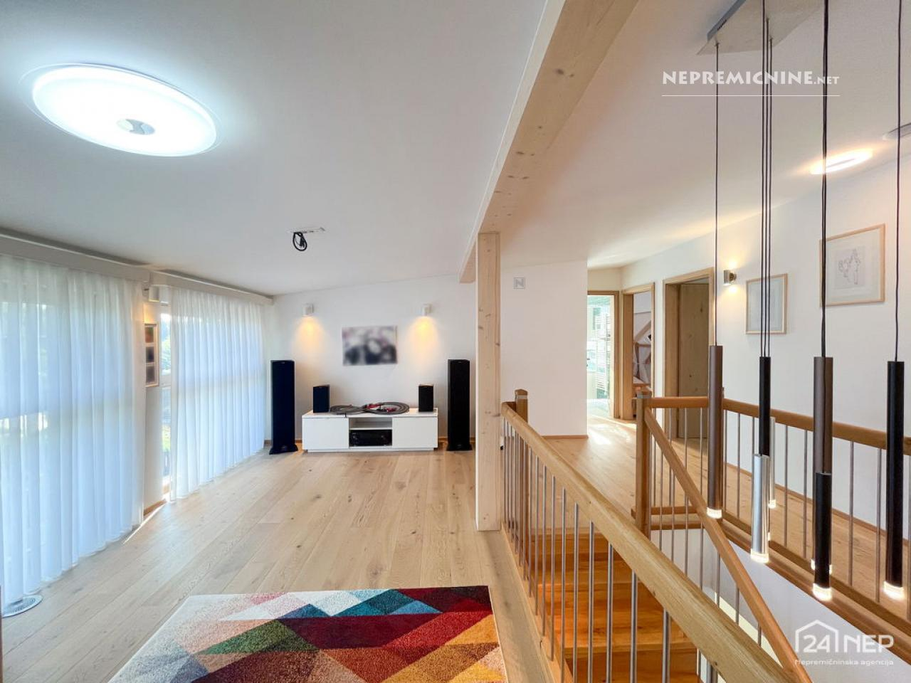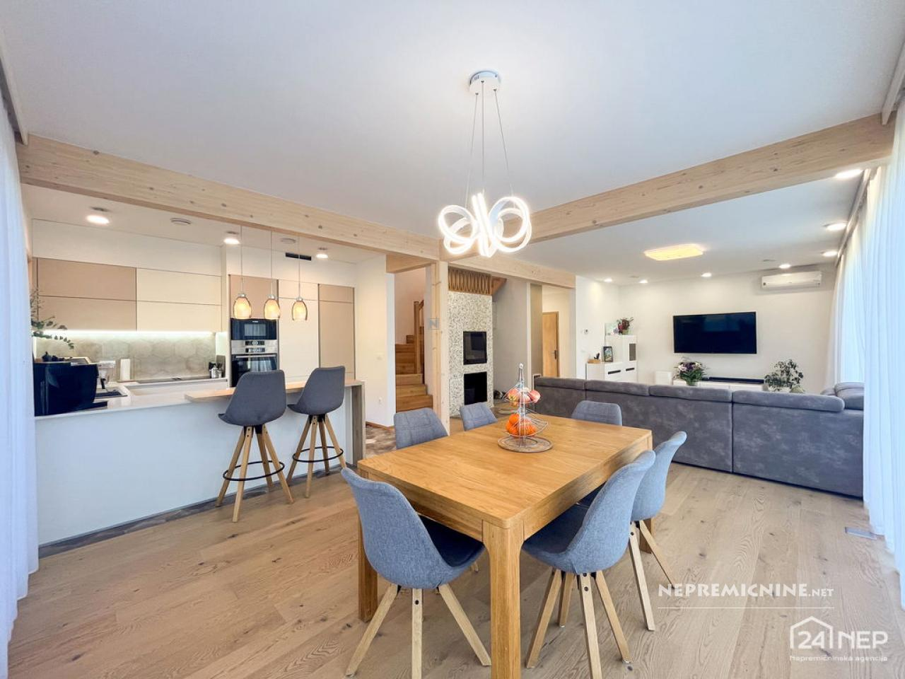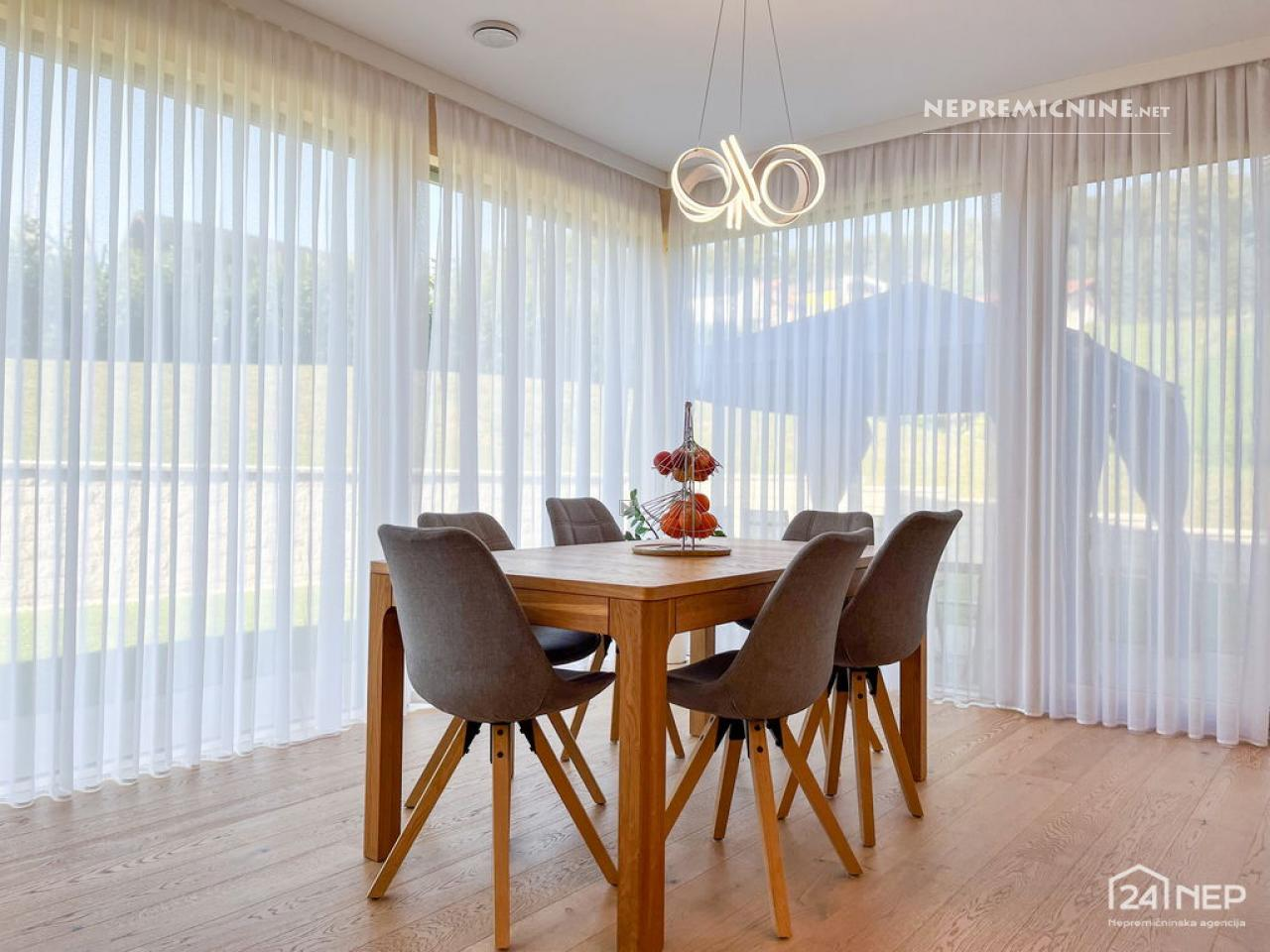 Ontdek deze uitzonderlijke vrijstaande woning in het idyllische Spodnji Duplek, gelegen op een groene, rustige en zonnige locatie, slechts 15 minuten rijden van het centrum van Maribor. Deze moderne woning, gebouwd in 2021, biedt een hoogwaardige constructie met een doordachte indeling die zorgt voor lichte, luchtige en aangename ruimtes. De skeletconstructie en glazen oppervlakken zorgen voor een overvloed aan natuurlijk licht en hoge energie-efficiëntie. De woning is uitgerust met vloerverwarming, een warmtepomp en airconditioning, en beschikt over een B1 energiecertificaat. De woning heeft een netto woonoppervlakte van 198,8 m² en een perceel van 1.146 m². De begane grond omvat een ontvangsthal, een ruimte voor een sauna, een open woonruimte met keuken, eetkamer en woonkamer met toegang tot het terras en de tuin. Op de eerste verdieping bevinden zich een ruime galerij, twee kinderkamers, een kinderkamerbadkamer, een studeerkamer en een slaapkamer met inloopkast en eigen badkamer. De woning is omgeven door groen en weilanden, wat rust, privacy en een verbinding met de natuur biedt. In de directe omgeving zijn alle benodigde voorzieningen aanwezig, waaronder een school en kleuterschool op slechts 5 minuten loopafstand. De woning biedt een uitstekende levenskwaliteit met veel licht, privacy en positieve energie, en is direct bewoonbaar zonder extra investeringen.