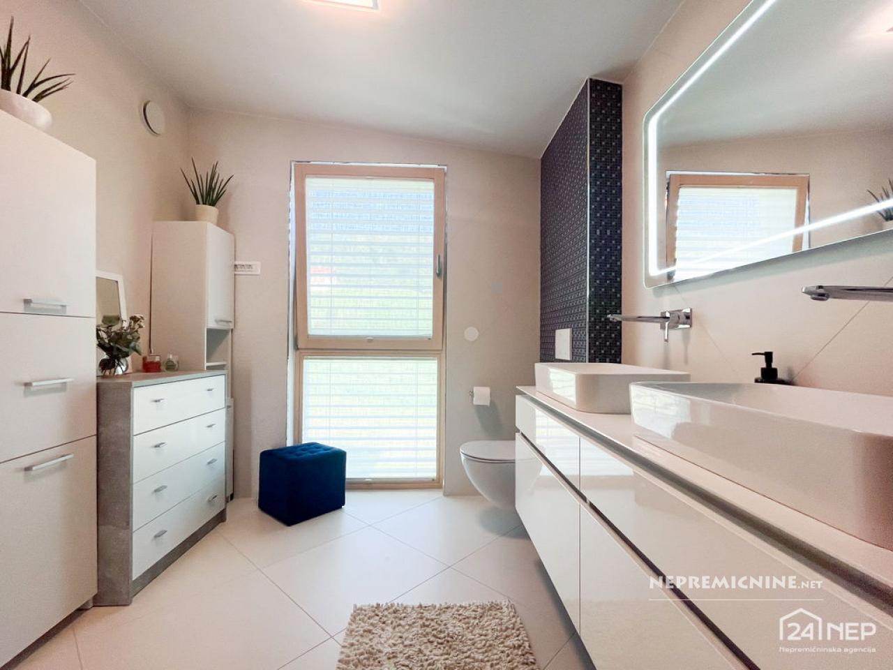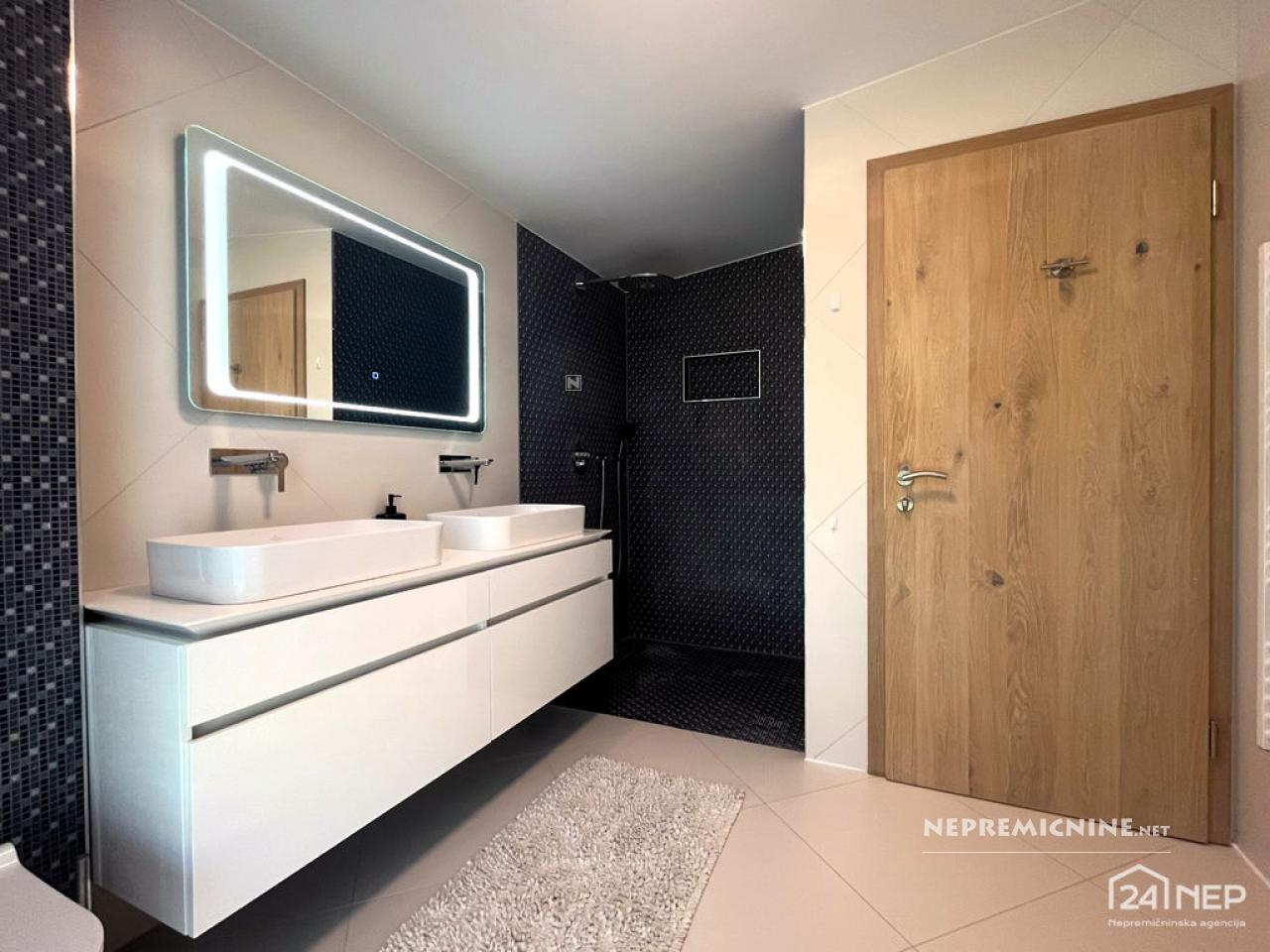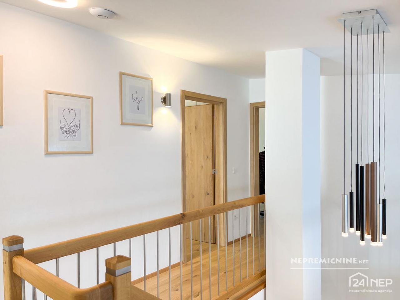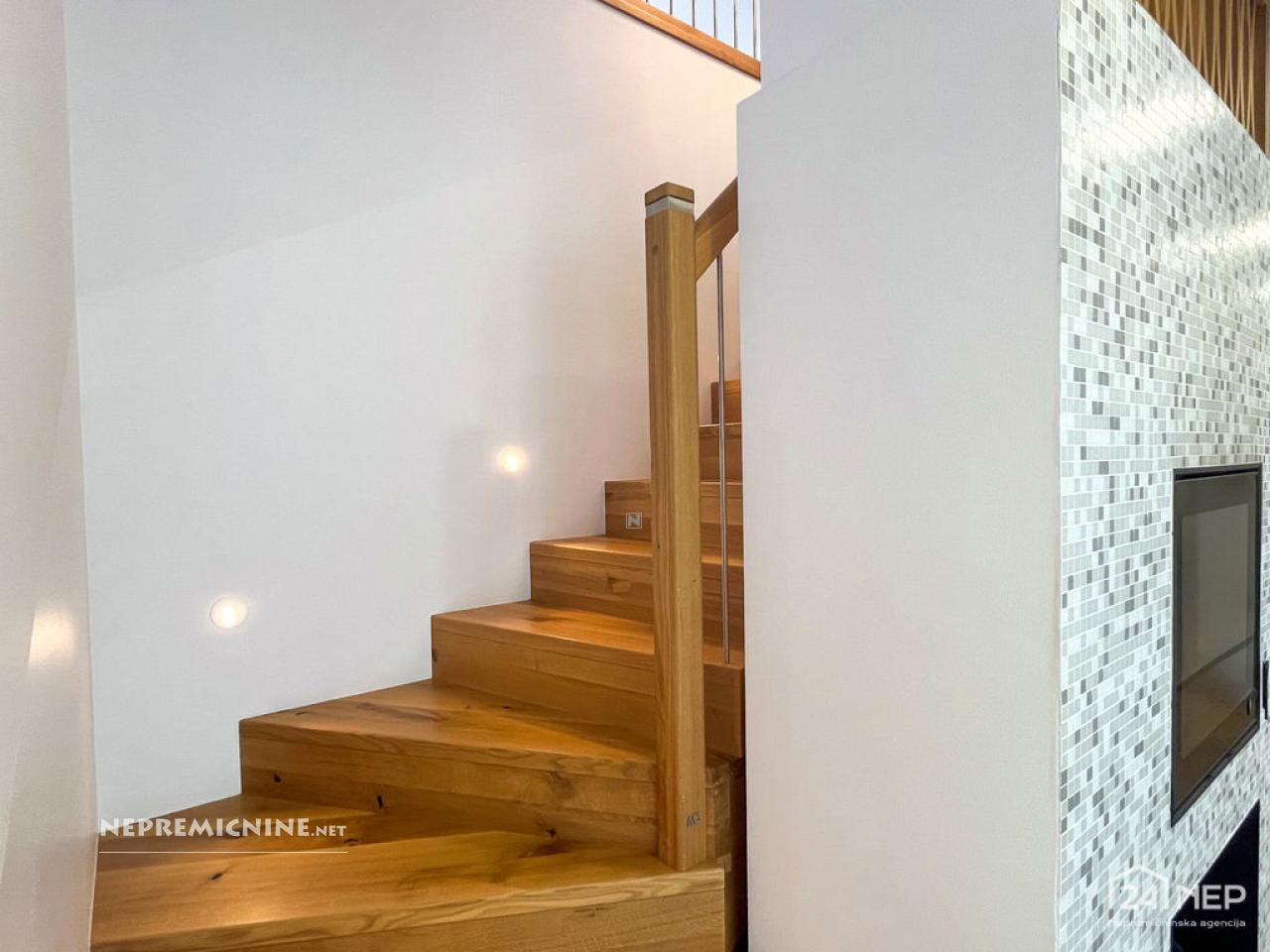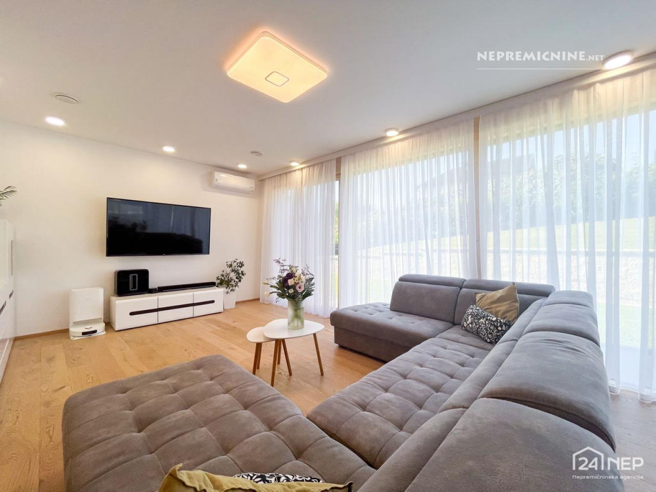 Ontdek deze uitzonderlijke vrijstaande woning in het idyllische Spodnji Duplek, gelegen op een groene, rustige en zonnige locatie, slechts 15 minuten rijden van het centrum van Maribor. Deze moderne woning, gebouwd in 2021, biedt een hoogwaardige constructie met een doordachte indeling die zorgt voor lichte, luchtige en aangename ruimtes. De skeletconstructie en glazen oppervlakken zorgen voor een overvloed aan natuurlijk licht en hoge energie-efficiëntie. De woning is uitgerust met vloerverwarming, een warmtepomp en airconditioning, en beschikt over een B1 energiecertificaat. De woning heeft een netto woonoppervlakte van 198,8 m² en een perceel van 1.146 m². De begane grond omvat een ontvangsthal, een ruimte voor een sauna, een open woonruimte met keuken, eetkamer en woonkamer met toegang tot het terras en de tuin. Op de eerste verdieping bevinden zich een ruime galerij, twee kinderkamers, een kinderkamerbadkamer, een studeerkamer en een slaapkamer met inloopkast en eigen badkamer. De woning is omgeven door groen en weilanden, wat rust, privacy en een verbinding met de natuur biedt. In de directe omgeving zijn alle benodigde voorzieningen aanwezig, waaronder een school en kleuterschool op slechts 5 minuten loopafstand. De woning biedt een uitstekende levenskwaliteit met veel licht, privacy en positieve energie, en is direct bewoonbaar zonder extra investeringen.
