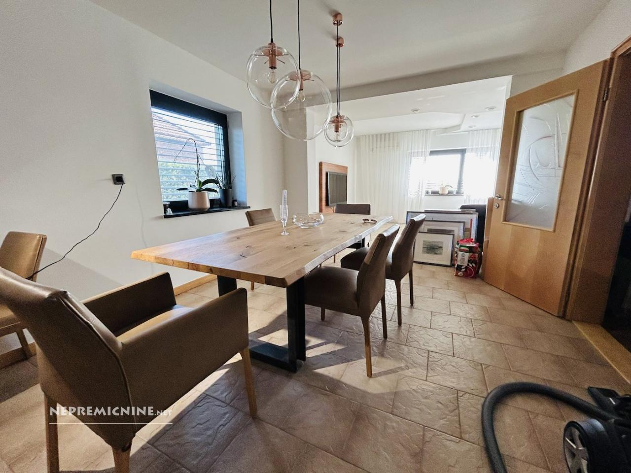 De woning beschikt over een indrukwekkend wellnesscentrum met een binnenzwembad van 8 x 4 meter, twee sauna’s (Fins en infrarood) en een ontspanningsruimte. De ruime en lichte woonruimtes zijn ontworpen met oog voor detail en bieden een comfortabele leefomgeving. De woning heeft meerdere slaapkamers, moderne badkamers, een volledig uitgeruste keuken en een prachtige tuin met een fontein en een traditionele Prekmurje-huis.