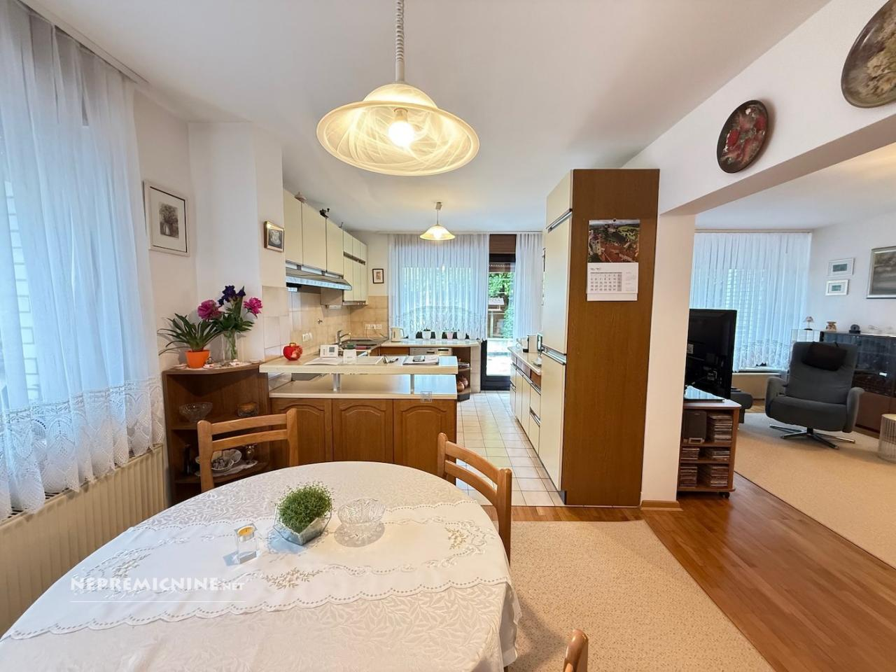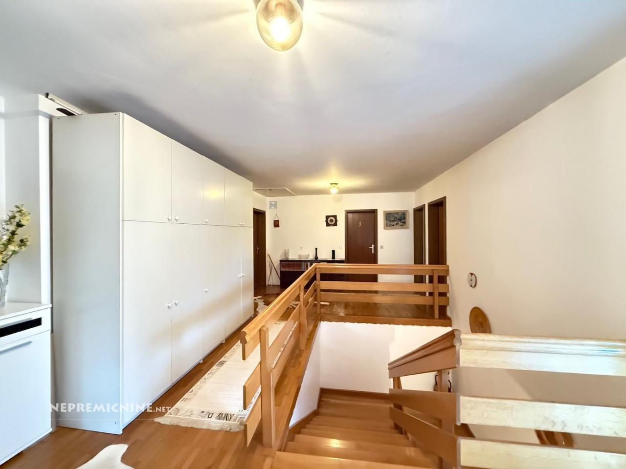 Ontdek deze prachtige vrijstaande woning in de rustige wijk Trnovo, Ljubljana. Gebouwd in 1988 en gerenoveerd in 2010, biedt deze woning een royale woonoppervlakte van 282,9 m² en een ruim perceel van 1187 m². De woning beschikt over een goed onderhouden tuin en een terras, ideaal voor ontspanning. De woning is voorzien van een moderne Gerard dakbedekking met een garantie van 40 jaar, dubbele houten ramen en een combinatie van parket, laminaat en tegels als vloerbedekking. De indeling omvat een ruime open keuken en eetkamer, een grote woonkamer met toegang tot het terras, een werkkamer, een badkamer, een apart toilet, een bijkeuken en een zelfstandige studio op de begane grond. Op de eerste verdieping bevinden zich zes slaapkamers en twee badkamers. De woning is ideaal gelegen op slechts 20 minuten loopafstand van het centrum van Ljubljana, met gemakkelijke toegang tot scholen, winkels en openbaar vervoer. Trnovo is een charmante buurt met een rijke geschiedenis en biedt een scala aan culturele en recreatieve activiteiten. Geniet van de nabijheid van het Tivoli Park en de Ljubljanica rivier, perfect voor wandelingen en fietstochten. De woning wordt verwarmd via centrale verwarming op stadsverwarming en beschikt over zonnecollectoren voor warm water. Mis deze unieke kans niet om te wonen in een van de meest gewilde wijken van Ljubljana.