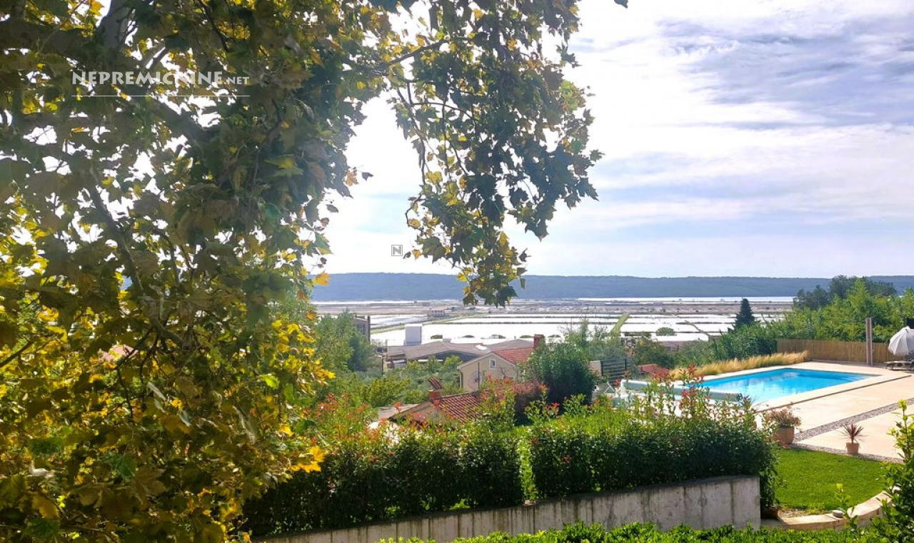 Deze ruime vrijstaande woning van 306,4 m² is gelegen op een van de mooiste locaties aan de Sloveense kust, met adembenemend uitzicht op de zee en de Sečovlje zoutpannen.