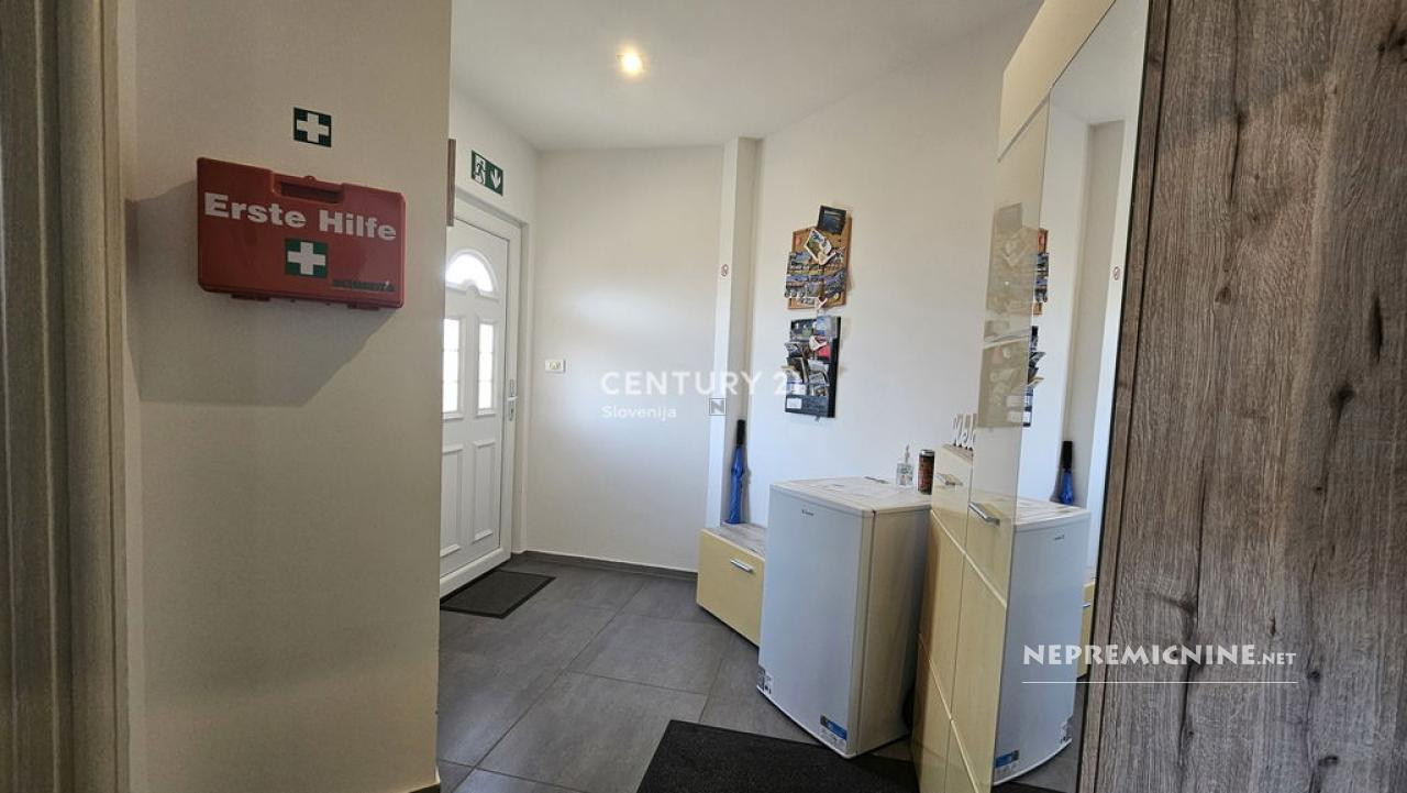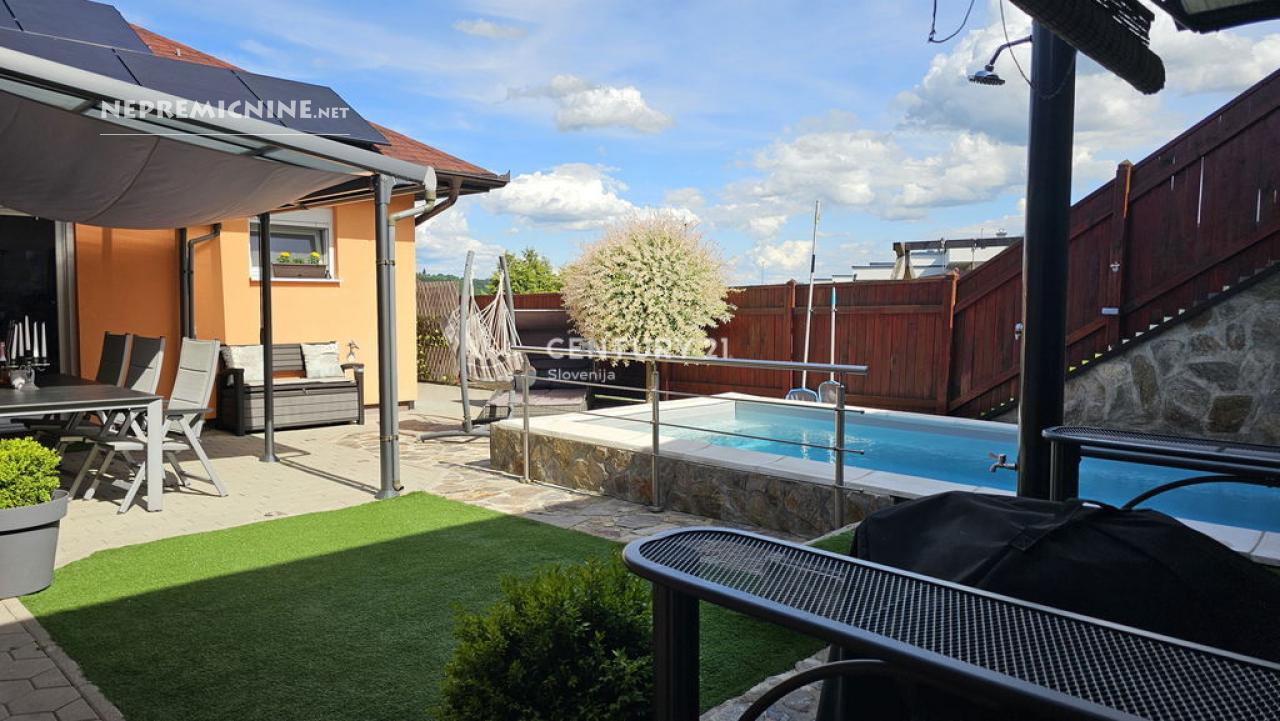 Ontdek deze prachtige vrijstaande woning in Šentilj v Slovenskih Goricah, gelegen in een rustige woonwijk. Deze moderne woning, gebouwd in 2016 en gerenoveerd in 2022, biedt een comfortabele leefruimte van 125,5 m² en een perceel van 422 m². De woning beschikt over een apart appartement, ideaal voor verhuur via Airbnb of voor familieleden. Geniet van het verwarmde zwembad, aangedreven door een warmtepomp, en de eigen zonne-energie-installatie, waardoor de woning bijna zelfvoorzienend is. De woning is voorzien van vloerverwarming, airconditioning en hoogwaardige keramische vloeren. De regio Podravska staat bekend om zijn prachtige natuur en biedt tal van recreatiemogelijkheden. In de buurt vindt u winkels, restaurants en goede vervoersverbindingen. Deze woning is perfect voor wie op zoek is naar comfort, lage kosten en de mogelijkheid tot extra inkomsten.