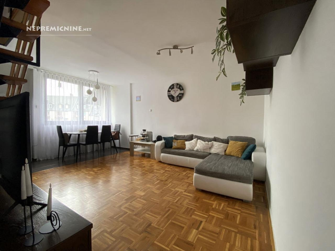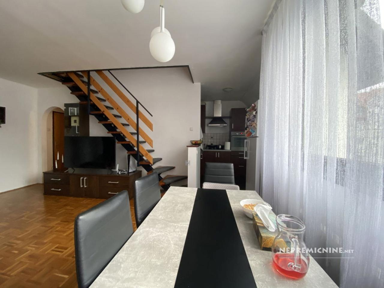 Dit goed onderhouden en gedeeltelijk gemeubileerde 3-kamer appartement bevindt zich op de vierde verdieping van een verzorgd appartementencomplex in de rustige en aangename omgeving van Rabelčja vas in Ptuj. Het appartement biedt een uitstekende indeling van ruimtes en een overvloed aan natuurlijk licht. Het bestaat uit een ruime hal, een badkamer, een keuken, eetkamer en woonkamer die samen een open en functionele leefruimte vormen. Via een trap in de woonkamer bereikt u de zolder, waar zich een slaapkamer, kinderkamer en een extra badkamer bevinden. Het appartement beschikt over een kelderruimte en parkeergelegenheid voor het gebouw. Alle benodigde aansluitingen zijn aanwezig, inclusief een intercom en airconditioning. Verwarming is centraal via een warmtenet (verbruik per meter). De locatie biedt snelle toegang tot alle essentiële diensten, zoals winkels, een ziekenhuis, een gezondheidscentrum, basisschool en middelbare school, evenals talrijke groene gebieden voor recreatie en wandelingen. Het appartement is ingeschreven in het kadaster, vrij van lasten en beschikbaar in overleg. Bezoek en ervaar het comfort en de aangename sfeer die dit appartement biedt!