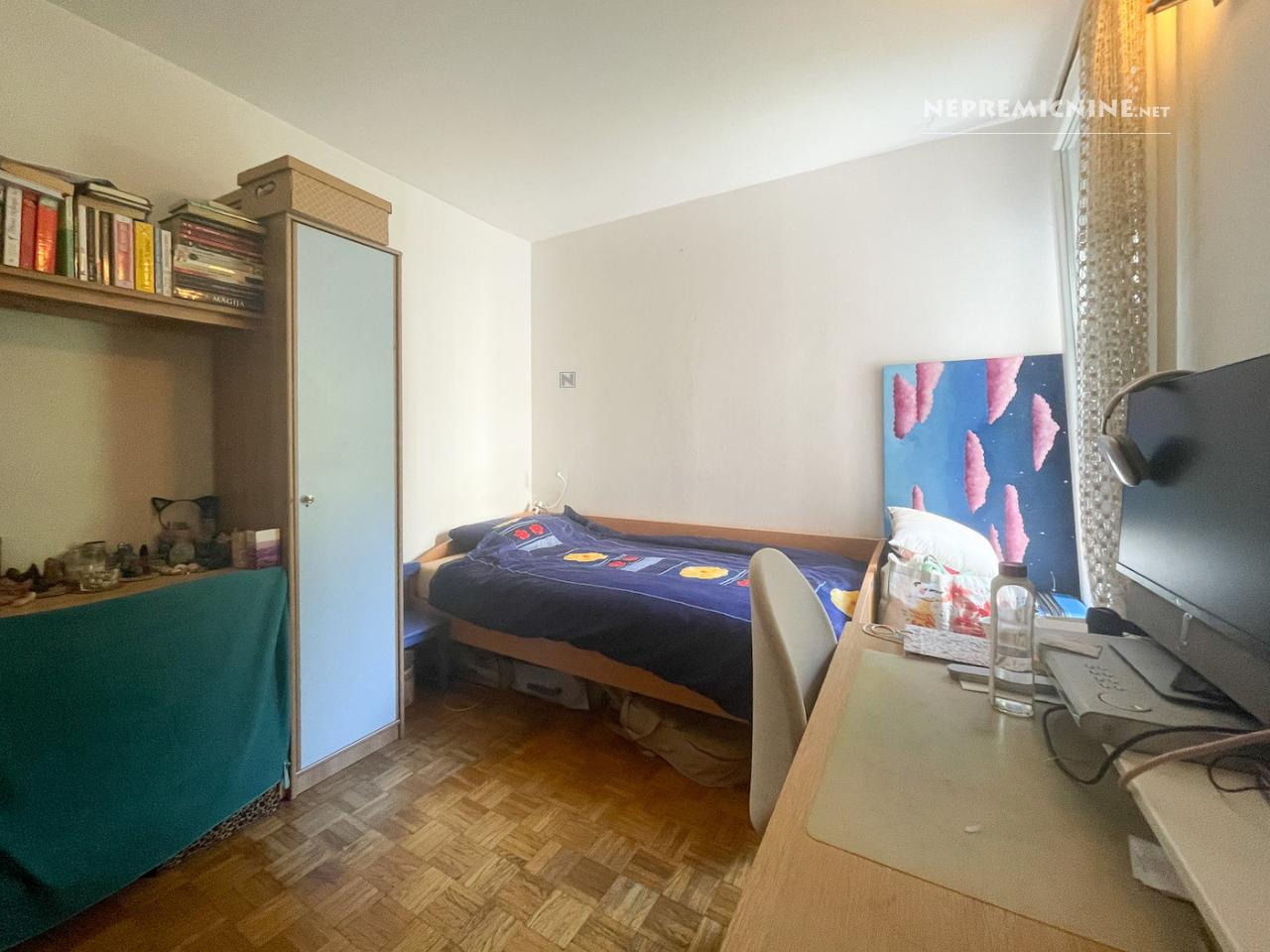 Dit ruime 3-kamer appartement van 74,7 m² bevindt zich in de levendige wijk Ljubljana Šiška, aan de Ulica Ane Ziherlove. Gelegen op de eerste verdieping van een gebouw met tien verdiepingen, biedt het appartement een prachtig uitzicht op het park vanaf het glazen balkon. Het gebouw, gebouwd in 1968, heeft recentelijk een vernieuwde gevel en dak gekregen, wat bijdraagt aan de energie-efficiëntie. Het appartement is gedeeltelijk gemeubileerd en beschikt over een functionele indeling met een keuken en eetkamer die toegang bieden tot het balkon, een woonkamer die kan worden samengevoegd met de keuken voor een open leefruimte, een slaapkamer, een kinderkamer, een badkamer met bad en wastafel, een apart toilet en een hal. De ligging is ideaal voor jonge gezinnen of investeerders, met alle benodigde infrastructuur in de buurt, zoals supermarkten Mercator en DM, en het winkelcentrum Aleja aan de overkant van de Celovška cesta. De locatie biedt uitstekende verbindingen met het stadscentrum en andere delen van Ljubljana, dankzij de nabijheid van de ringweg. Het appartement is voorzien van een lift, opslagruimte, en biedt parkeermogelijkheden voor en rondom het gebouw. Het is aangesloten op een stadsverwarmingssysteem en heeft een optische internetverbinding. De woning is kadastraal geregistreerd en vrij van lasten, en kan in overleg worden betrokken.