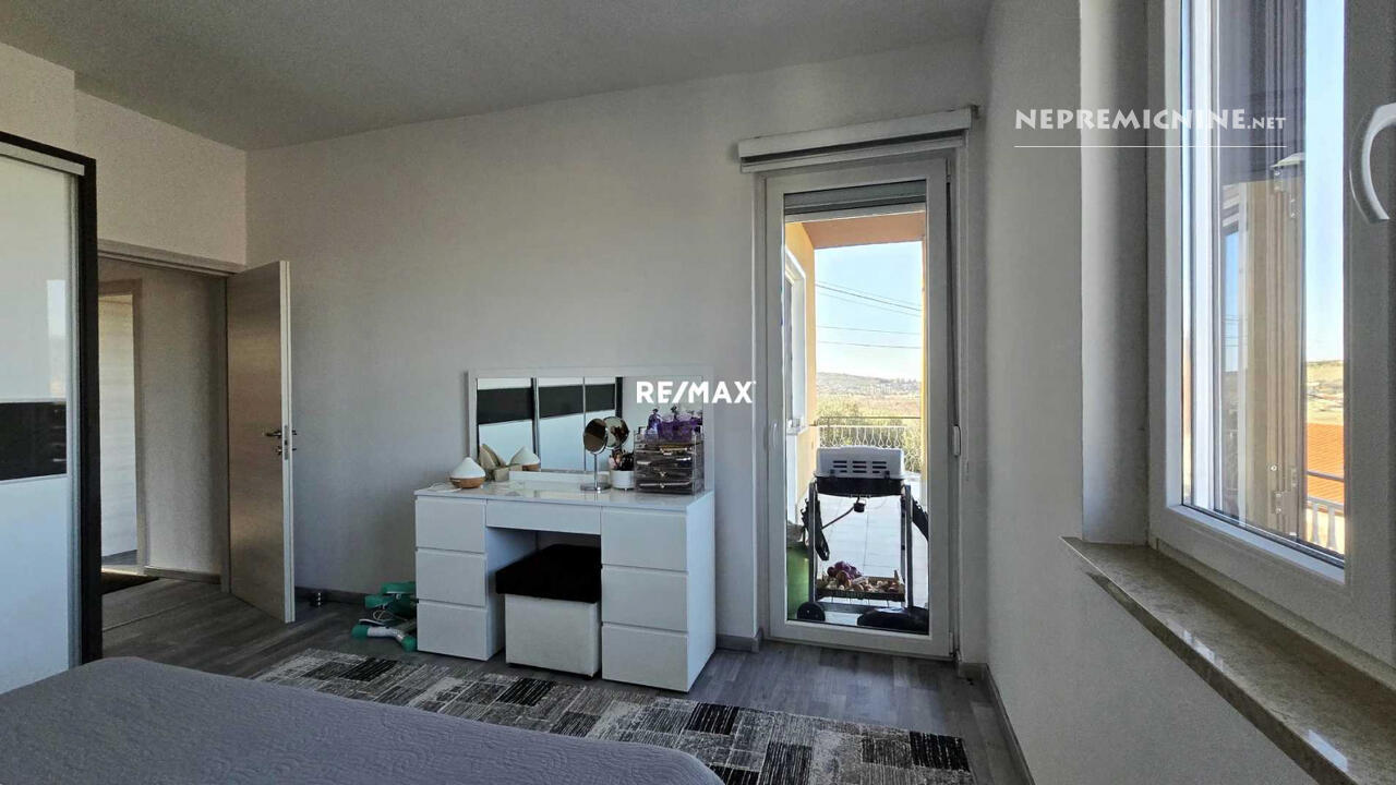 Dit prachtige en volledig gerenoveerde 4-kamer appartement in Manžan, Koper, biedt een unieke kans voor gezinnen en investeerders. Met een netto vloeroppervlakte van 138,9 m², gelegen in een meergezinswoning met drie appartementen, biedt het een ruime en lichte leefomgeving. Het appartement beslaat de gehele eerste verdieping en heeft toegang tot een grote zolder (138 m²) en een overdekt terras van 26,7 m² met een adembenemend uitzicht op de zee. Er is parkeergelegenheid voor drie auto’s. De indeling omvat een moderne keuken, een woonkamer met toegang tot het terras, drie slaapkamers waarvan één met terras, een badkamer met douche, een apart toilet, een ruime hal met inbouwkasten en een glazen balkon. Het appartement is volledig gemeubileerd met op maat gemaakte meubels en is direct beschikbaar. De locatie in Manžan biedt gemakkelijke toegang tot Koper (5 km) en heeft een vlakke, goed onderhouden fietspad. Alle basisvoorzieningen zoals winkels, scholen en gezondheidszorg zijn binnen 5 km bereikbaar. De regio Južna Primorska staat bekend om zijn prachtige kustlijn en toeristische attracties zoals de historische stad Piran en de grotten van Škocjan. Het appartement is ideaal voor een gezin van vijf en biedt een moderne en comfortabele leefomgeving met een terras dat geschikt is voor buitenleven van april tot november.