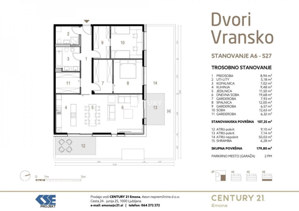 Dit prachtige 3-kamer appartement in het nieuwbouwproject Dvori Vransko biedt een unieke kans voor wie op zoek is naar een moderne en comfortabele woonruimte. Gelegen in het pittoreske dorpje Brode, biedt deze woning een uitstekende verbinding met de snelweg, waardoor steden als Ljubljana, Celje en Maribor gemakkelijk bereikbaar zijn. Het appartement beschikt over een royale oppervlakte van 179,8 m² en is voorzien van een atrium, twee parkeerplaatsen en een berging. De moderne voorzieningen zoals vloerverwarming, rekuperatie en airconditioning zorgen voor een aangenaam woonklimaat. De elektrische jaloezieën en de hoge energiestandaarden dragen bij aan het comfort en de duurzaamheid van de woning. In de directe omgeving vindt u alle benodigde infrastructuur, zoals winkels, scholen en een gezondheidscentrum. De regio Savinjska staat bekend om zijn prachtige natuur en biedt tal van recreatiemogelijkheden, zoals wandelen en fietsen in de nabijgelegen heuvels. Dit appartement is ideaal voor gezinnen of investeerders die op zoek zijn naar een woning in een rustige en goed bereikbare omgeving.