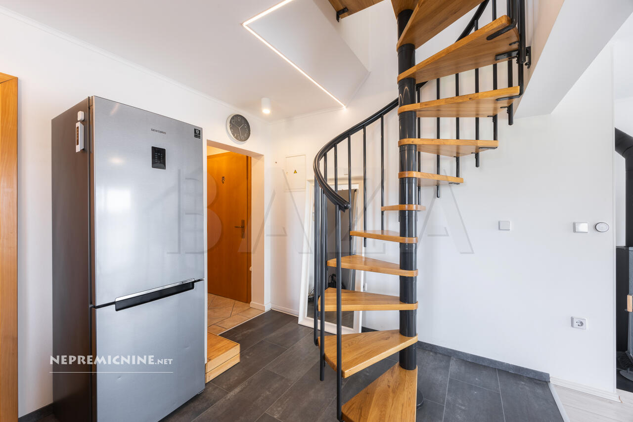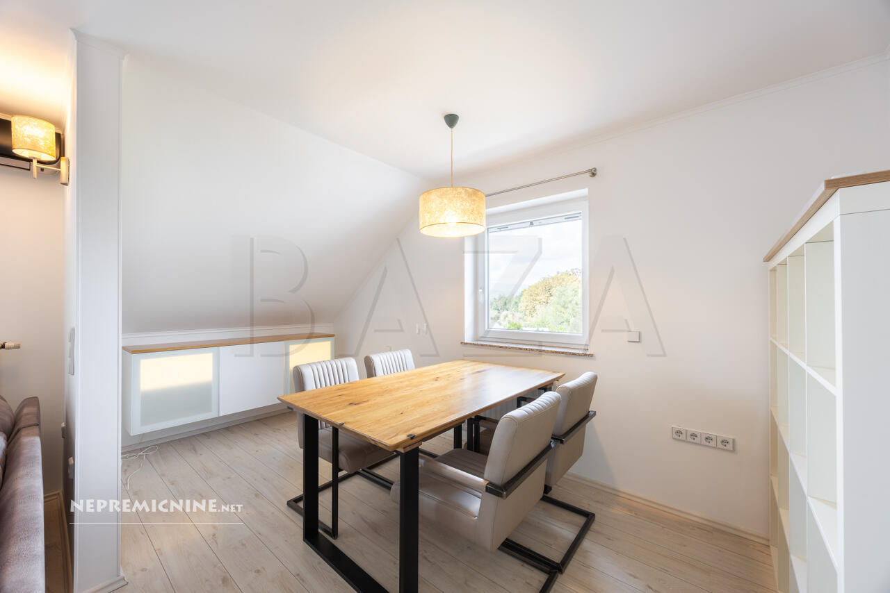 Dit prachtige 4-kamer appartement in Pragersko, gelegen in de regio Podravska, biedt een unieke kans voor zowel gezinnen als investeerders. Het appartement, gebouwd in 2008 en gerenoveerd in 2022, bevindt zich op de tweede verdieping van een meergezinswoning en heeft een netto vloeroppervlak van 116,4 m². De indeling omvat een hal, een badkamer met ligbad, een keuken en een woonkamer met eetgedeelte die toegang biedt tot een balkon van 5,2 m². Op de bovenverdieping, bereikbaar via een eikenhouten trap, bevinden zich een kamer met inloopkast en een slaapkamer. Het appartement wordt volledig gemeubileerd verkocht met op maat gemaakte meubels van hoge kwaliteit.