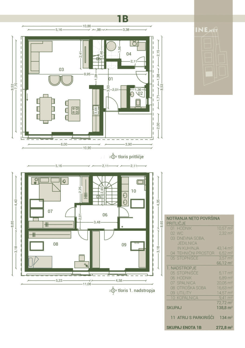 Ontdek het moderne en ruime appartement in het rustige en groene Bizovik, onderdeel van het Vis-a-Vis project. Dit nieuwbouwproject bestaat uit vijf gezinswoningen en biedt een perfecte balans tussen stedelijk comfort en natuur. Het appartement heeft een totale oppervlakte van 272,8 m², waarvan 138,8 m² woonoppervlakte en een privé atrium van 134 m² met parkeergelegenheid. Ideaal voor gezinnen die ruimte, licht en een verbinding met de natuur zoeken. Het project ligt op slechts 5 km van het centrum van Ljubljana en biedt een veilige, privé en boutique woonomgeving met slechts 10 eenheden. Geniet van moderne architectuur, hoogwaardige bouw en een doordachte indeling die comfortabel en functioneel wonen garandeert. Nabijgelegen recreatiegebieden en de nabijheid van de snelweg maken dit een aantrekkelijke locatie voor zowel wonen als investeren. Mis deze beperkte kans op een voorverkoop niet en reserveer uw nieuwe woning in dit exclusieve project.