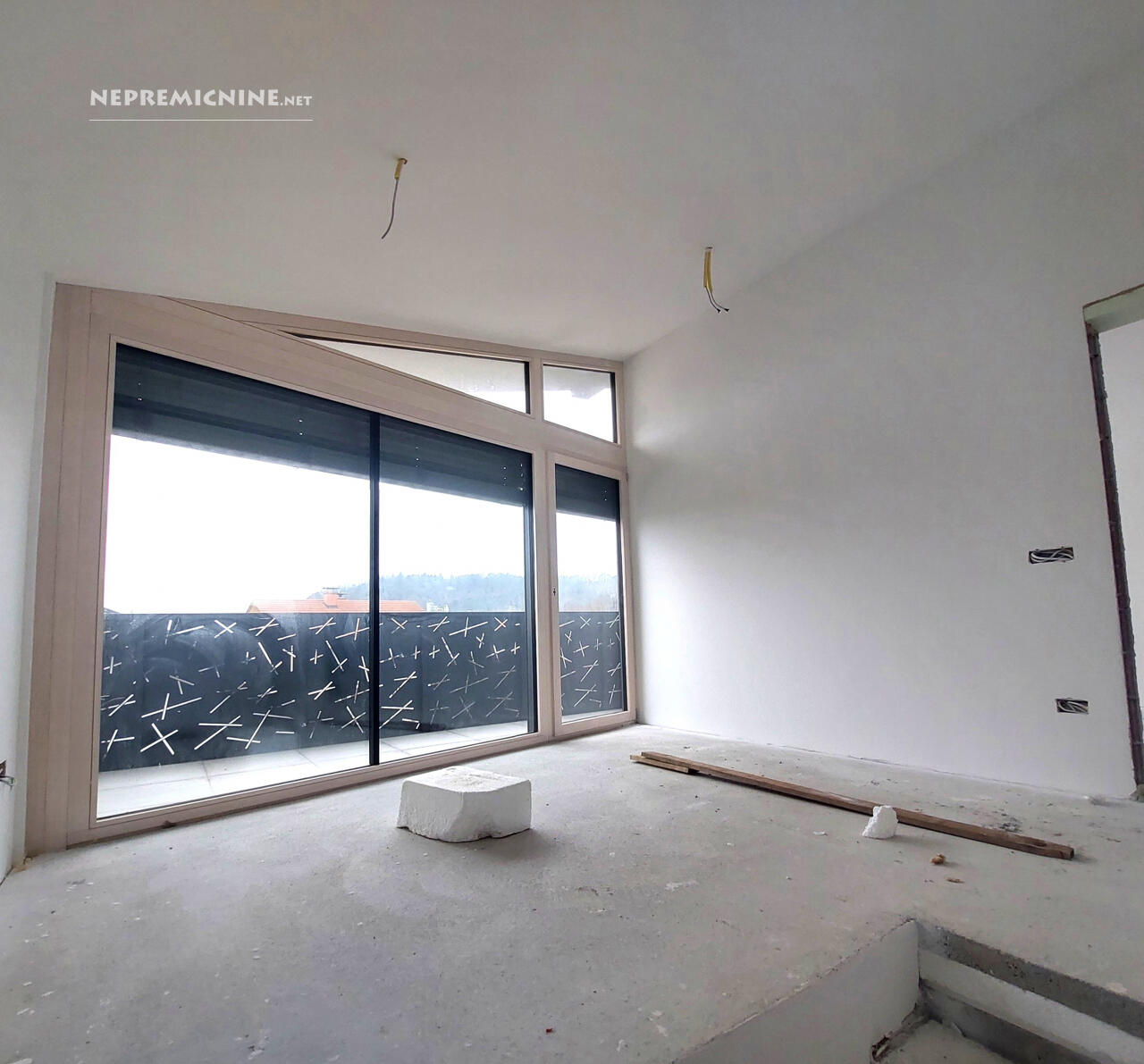 Dit prachtige vier-en-een-half-kamer dupleks appartement in Šentjakob biedt een royale woonoppervlakte van 159,8 m², met een extra 25 m² grond. Het appartement is ontworpen met een moderne en gedurfde architectuur, met veel aandacht voor energie-efficiëntie en open, lichte ruimtes. De woning beschikt over een terras en twee balkons, die samen 39,55 m² beslaan, waardoor u kunt genieten van een prachtig uitzicht en veel natuurlijk licht. De centrale woonruimte is voorzien van hoogwaardige ALU-houten ramen en biedt een open keuken, eetkamer en een ruime woonkamer met een kleinere terras. Het slaapgedeelte bevindt zich op de bovenverdieping, wat zorgt voor een scheiding tussen het sociale en het meer intieme deel van het huis. De locatie in Šentjakob biedt directe toegang tot de snelweg en een snelle verbinding met Ljubljana. In de buurt vindt u een kleuterschool, winkels en diverse recreatiemogelijkheden. Dit appartement is ideaal voor gezinnen en biedt een uitstekende balans tussen stedelijk wonen en nabijheid van de natuur.