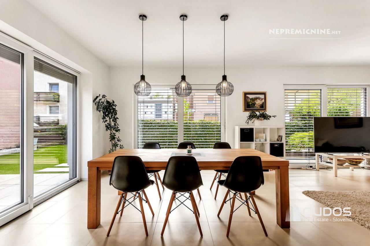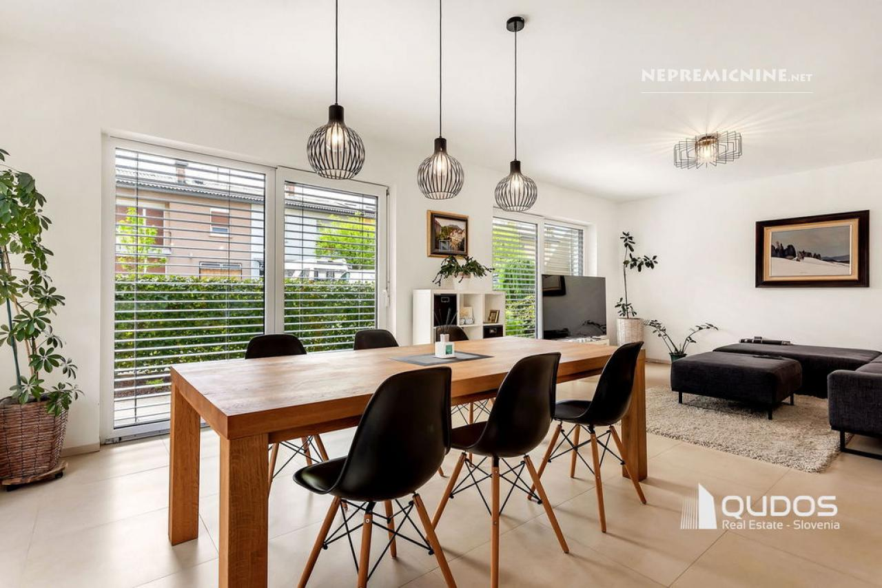 In het prachtige Kranj, gelegen in de regio Gorenjska, bieden wij een ruime en moderne woning aan in het gewilde Šorlijevo naselje. Deze woning, gebouwd in 2016, heeft een totale oppervlakte van 213,9 m² en beschikt over een privé atrium van 80 m². De woning is verdeeld over drie verdiepingen en biedt een comfortabele en stijlvolle leefomgeving. Op de begane grond bevindt zich een grote, lichte woonkamer met toegang tot het zuidwestelijk gelegen atrium, een volledig uitgeruste keuken met eetkamer, een gastentoilet, een wasruimte en een berging. De eerste verdieping herbergt drie ruime slaapkamers, waarvan twee met toegang tot een balkon, en een luxe badkamer met bad. De zolderverdieping biedt een grote multifunctionele ruimte die kan dienen als extra slaapkamer, atelier, fitnessruimte of speelkamer, evenals een extra badkamer en opslagruimte. De woning is gebouwd met hoogwaardige materialen en is voorzien van vloerverwarming en een Daikin warmtepomp, wat zorgt voor een aangenaam binnenklimaat en lage energiekosten. De woning heeft een uitstekende energieklasse B2 en beschikt over twee eigen parkeerplaatsen in de ondergrondse garage. Kranj biedt een uitstekende infrastructuur met scholen, winkels en snelle toegang tot de snelweg en het stadscentrum. De regio Gorenjska staat bekend om zijn prachtige natuur en toeristische attracties zoals het Triglav Nationaal Park en het meer van Bled. Deze woning is een unieke kans voor wie op zoek is naar een hoogwaardige woning op een toplocatie.