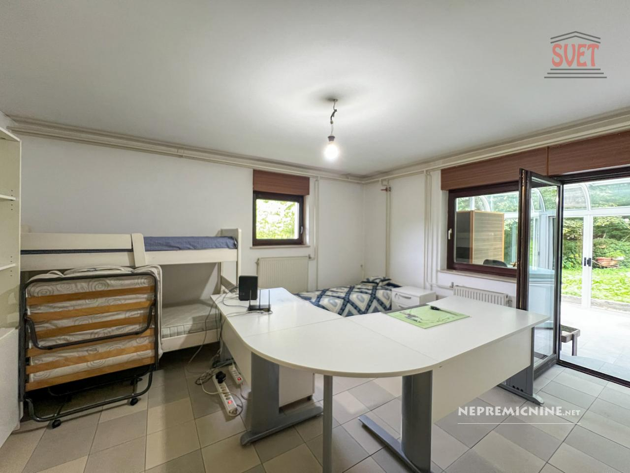 Ontdek deze prachtige vrijstaande woning in Trbovlje, gelegen in een rustige woonwijk aan de rand van het bos. Deze woning biedt volledige privacy als laatste huis in de rij en beschikt over een royale woonoppervlakte van 290,7 m² verdeeld over drie verdiepingen. De woning is volledig ingericht en direct beschikbaar voor bewoning. De begane grond biedt een ruime woonkamer met eetkamer en keuken, die toegang biedt tot een balkon en een grote terras op het zuiden. De bovenverdieping beschikt over een grote hoofdslaapkamer met een loggia, een kinderkamer en een badkamer. De kelderverdieping is voorzien van een extra keuken, eetkamer, kamer, badkamer en een wintertuin met sauna en jacuzzi. De woning is omgeven door een tuin van 638 m² met een tuinhuisje en een garage. Trbovlje is een charmante stad in de regio Zasavska, bekend om zijn prachtige natuur en rustige omgeving. In de buurt vindt u diverse winkels, restaurants en recreatiemogelijkheden. De stad is goed bereikbaar met het openbaar vervoer en biedt een uitstekende uitvalsbasis voor het verkennen van de regio.