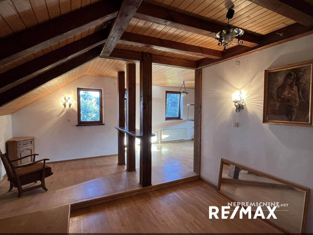 Ontdek deze prachtige vrijstaande woning in Hruševo, Dobrova, met een royale woonoppervlakte van 220 m² en een uitgestrekt perceel van 1.522 m². Gebouwd in 1988, biedt deze woning een unieke kans voor gezinnen die op zoek zijn naar ruimte en comfort. De woning beschikt over drie slaapkamers en twee badkamers, ideaal voor een groot gezin. De begane grond is voorzien van een ruime keuken met eetkamer, een grote woonkamer met een traditionele houtkachel, en een aparte slaapkamer met badkamer. De eerste verdieping biedt twee extra slaapkamers en een badkamer, evenals een grote open ruimte met toegang tot een balkon met een prachtig uitzicht op de omliggende natuur. De woning is uitgerust met centrale verwarming op olie en hout, en beschikt over een garage, een werkplaats, en een sauna. De tuin is een oase van rust met fruitbomen, sierplanten, en twee kleine vijvers. Gelegen op slechts 10 km van het centrum van Ljubljana, biedt deze woning de perfecte balans tussen landelijke rust en stedelijke voorzieningen. De regio Ljubljana-okolica staat bekend om zijn prachtige natuur en recreatiemogelijkheden, met gemakkelijke toegang tot winkels, restaurants, en openbaar vervoer.