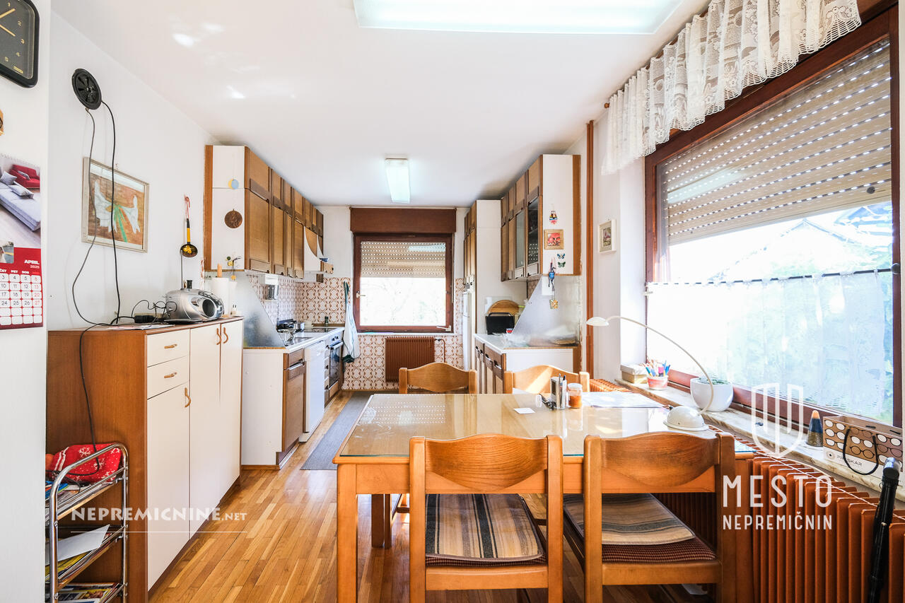 Deze prachtige, vrijstaande gezinswoning in Novo Mesto biedt een unieke kans voor zowel gezinnen als investeerders. Gelegen op slechts 1 km van het historische stadscentrum, biedt deze woning gemakkelijke toegang tot lokale voorzieningen en belangrijke fabrieken zoals Revoz en Krka. De woning, gebouwd in 1981, is verdeeld over drie niveaus (P+1+M) en beschikt over twee zelfstandige appartementen, elk met drie kamers, een keuken, een badkamer en toegang tot een terras of balkon. Het gelijkvloers biedt een commerciële ruimte die kan worden omgebouwd tot een derde woonunit. De woning is stevig gebouwd met aardbevingsbestendige materialen en heeft een uitstekende toegang tot de openbare weg. Parkeren is mogelijk in de garage en op de oprit met ruimte voor vijf auto’s. De omgeving van Novo Mesto staat bekend om zijn rustige en goed onderhouden karakter, met snelle toegang tot de snelweg en nabijheid van winkels, scholen, kinderdagverblijven en openbaar vervoer. De regio Dolenjska biedt prachtige landschappen en culturele bezienswaardigheden, ideaal voor toeristen en investeerders.