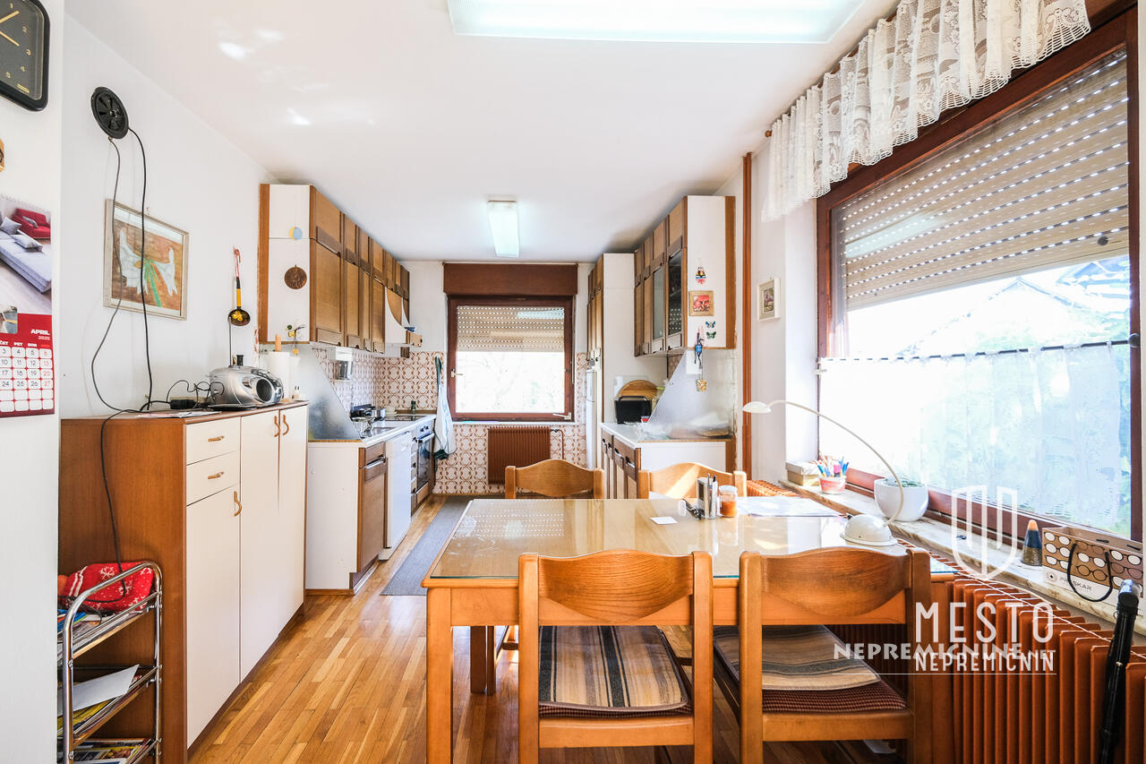 Deze prachtige tweewoonst in Novo Mesto biedt een unieke kans voor gezinnen of investeerders. Gelegen op slechts 1 km van het historische stadscentrum, biedt deze woning een uitstekende locatie met gemakkelijke toegang tot lokale voorzieningen en belangrijke fabrieken zoals Revoz en Krka. De woning, gebouwd in 1981, is verdeeld over drie niveaus (P+1+M) en beschikt over twee zelfstandige appartementen, elk met drie kamers, een keuken, een badkamer en toegang tot een terras of balkon. Het gelijkvloers biedt een commerciële ruimte die kan worden omgebouwd tot een derde wooneenheid. De woning is stevig gebouwd met aardbevingsbestendige materialen en biedt parkeergelegenheid in een garage en op de oprit voor vijf auto’s. De rustige en goed onderhouden omgeving, samen met de nabijheid van winkels, scholen, en openbaar vervoer, maken dit een ideale plek om te wonen. Bovendien is de regio Dolenjska bekend om zijn prachtige natuur en culturele bezienswaardigheden, wat het een aantrekkelijke bestemming maakt voor toeristen en investeerders.