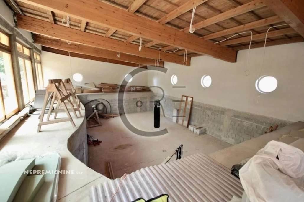 Ontdek deze indrukwekkende vrijstaande woning in Velike Lašče, gelegen in de regio Ljubljana-okolica. Met een royale oppervlakte van 774,8 m² biedt deze woning volop ruimte voor grote gezinnen of zakelijke doeleinden. De woning beschikt over twee aparte wooneenheden. De eerste verdieping herbergt een tweekamerappartement met een volledig uitgeruste keuken, eetkamer, woonkamer met open haard, slaapkamer met badkamer en een kantoor. Er is ook toegang tot onafgewerkte ruimtes voor douches, sanitair, sauna, jacuzzi en een overdekt zwembad met terras. De tweede verdieping biedt een duplex appartement met vier slaapkamers, elk met een eigen badkamer, een woonkamer met open haard, keuken, eetkamer en drie balkons. De woning is voorzien van moderne verwarmingssystemen, waaronder een oliegestookte ketel en een warmtepomp. Er is voldoende parkeergelegenheid voor ongeveer 10 auto’s en een garage met carport. De locatie biedt gemakkelijke toegang tot openbaar vervoer, winkels, scholen en andere voorzieningen. Velike Lašče is een charmant dorp met een rijke geschiedenis en biedt een rustige omgeving met prachtige natuur. De regio Ljubljana-okolica staat bekend om zijn schilderachtige landschappen en culturele bezienswaardigheden. Mis deze unieke kans niet om eigenaar te worden van een uitzonderlijk pand in een gewilde omgeving.