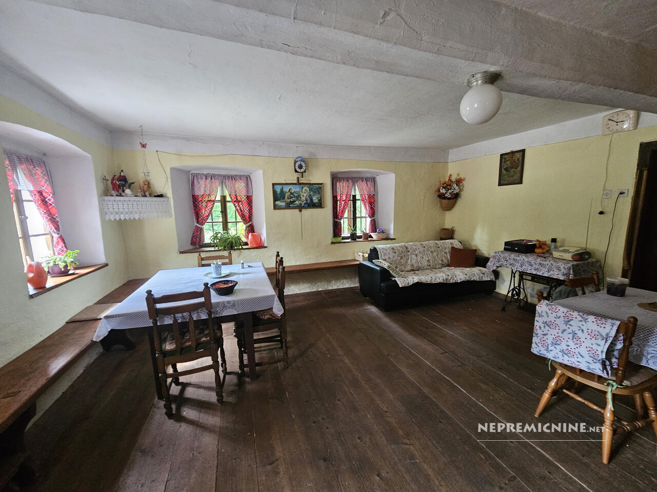 Deze prachtige boerderij in Godovič biedt een unieke kans voor investeerders. Gelegen op een rustige locatie, omgeven door weiden en bossen, beslaat het terrein maar liefst 66.446 m². De historische woning, oorspronkelijk gebouwd in 1787 en gerenoveerd in 1887, heeft een netto vloeroppervlak van 182 m². Het huis beschikt over een authentieke zwarte keuken, een ruime woonkamer met een traditionele houtkachel en diverse extra kamers en nissen. De boerderij omvat ook een grote schuur van 147 m², deels van steen en deels van hout, met goed bewaarde oude werktuigen. De regio biedt tal van toeristische attracties, zoals de nabijgelegen stad Idrija, bekend om zijn UNESCO-werelderfgoed en pittoreske landschappen. In de omgeving zijn er winkels, restaurants en goede vervoersmogelijkheden. De boerderij is ideaal voor wie op zoek is naar rust en ruimte in een historische setting.