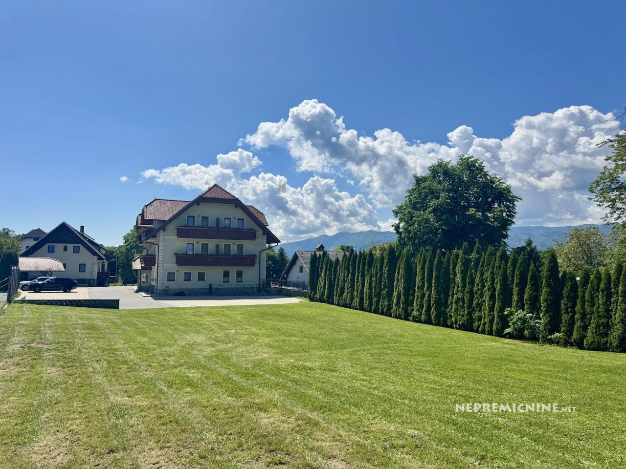 Dit indrukwekkende zakelijke complex in Hraše biedt een unieke investeringsmogelijkheid. Het complex bestaat uit een goed functionerend pension met wellnessfaciliteiten van 876,5 m² en een aparte woonhuis van 320,6 m², samen goed voor 1.197,1 m². Het pension, gebouwd in 2009, beschikt over 18 kamers met badkamers, een grote eetzaal, een professionele keuken en een wellnessruimte. De locatie is ideaal voor toeristische activiteiten, met de nabijheid van de snelweg en slechts 4 km van het centrum van Bled. De omgeving biedt tal van recreatiemogelijkheden zoals wandelen, fietsen, golfen en paardrijden. Het pand biedt een prachtig uitzicht op de Julische Alpen en de Karawanken. De totale perceelgrootte is 3.426 m², met ruimte voor uitbreiding zoals glamping huisjes. De regio Gorenjska staat bekend om zijn natuurlijke schoonheid en toeristische attracties.