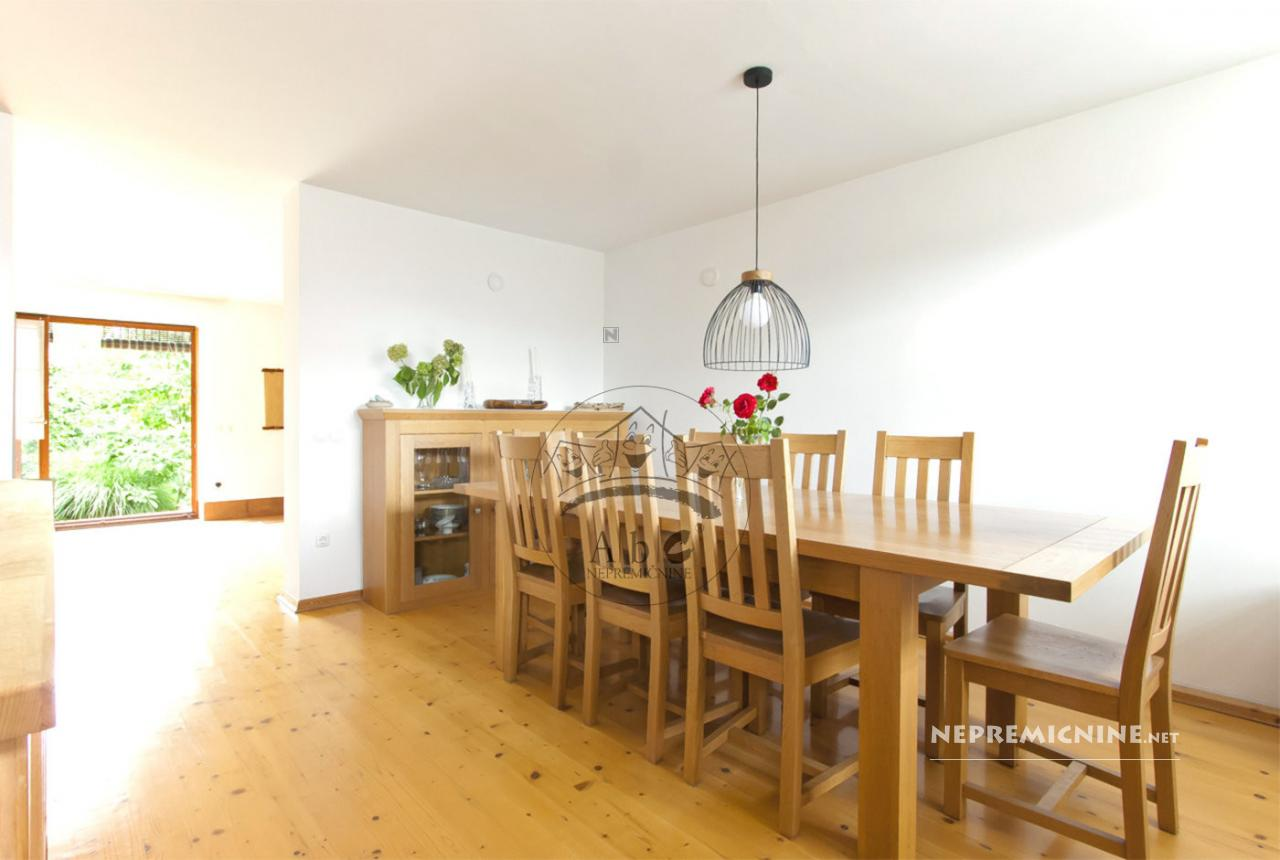 Deze uitzonderlijke gezinswoning bevindt zich in een rustig dorp nabij Grosuplje en biedt een prachtig uitzicht. De woning is gelegen op een bevoorrechte locatie waar u kunt genieten van volledige rust en privacy, terwijl u slechts 8 minuten rijden bent van alle benodigde infrastructuur zoals het centrum van Grosuplje, winkels, een bank, een postkantoor, een basisschool en een kleuterschool. De woning biedt 215 m² woonoppervlak verdeeld over drie verdiepingen (kelder, begane grond en eerste verdieping), wat onbeperkte functionaliteit en aanpassing aan elke familie mogelijk maakt. De begane grond heeft een open en licht concept met een keuken en eetkamer die naadloos overgaan in de woonkamer, met directe toegang tot het terras en de tuin. De eerste verdieping biedt twee extra kamers die kunnen dienen als kinderkamers, gastenkamers of een kantoor. De kelder is volledig uitgerust met een garage, opslagruimte, nutsruimte, stookruimte, zomerkeuken en een badkamer met toilet. De woning heeft een mooie en goed onderhouden tuin op een perceel van 616 m², ideaal voor familiebijeenkomsten of ontspanning. De regio Ljubljana-okolica biedt tal van recreatiemogelijkheden met groene gebieden, wandel- en fietspaden. De energieklasse van de woning is E.