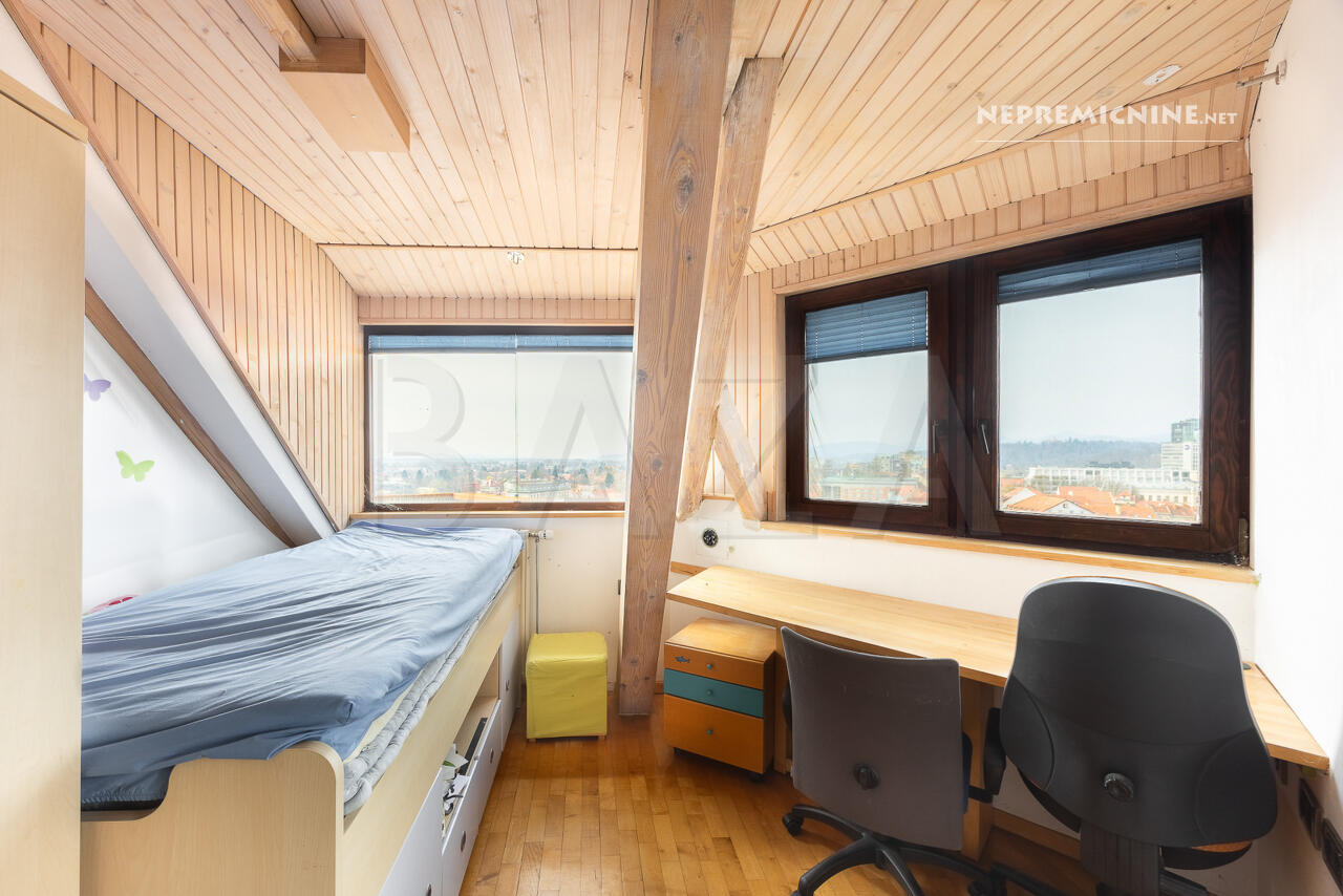 In het hart van Ljubljana, op een steenworp afstand van het kasteel, bevindt zich dit unieke 5-slaapkamer appartement. Gelegen op de bovenste verdieping van een charmant historisch gebouw, biedt het een prachtig uitzicht over de stad. Het appartement is volledig gerenoveerd tussen 1992 en 2003, met een extra badkamer renovatie in 2016. Het beschikt over een functionele indeling met een open woonruimte met een open haard, een keuken met opslagruimte, en een balkon op het westen. De locatie is rustig en omgeven door groen, maar biedt snelle toegang tot het oude stadscentrum en alle belangrijke voorzieningen. Het appartement heeft vloerverwarming op gas en een houtkachel, en is voorzien van airconditioning. Parkeren is mogelijk voor het gebouw met een vergunning voor bewoners. De nabijheid van recreatiegebieden, bushaltes en restaurants maakt het een ideale keuze voor diegenen die willen genieten van het stadsleven in Ljubljana.