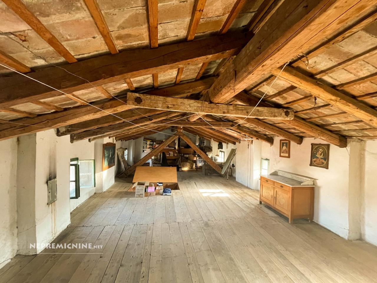 Te koop: een uitzonderlijk aantrekkelijke eigendom met drie gebouwen en een grote tuin, gelegen in het hart van Miren. Deze eigendom is ideaal voor zowel rustig gezinsleven als toeristische activiteiten. In de directe omgeving vindt u het oude dorpscentrum, een kerk, de rivier Vipava en de Oskar Kogoj Galerie. De eigendom bestaat uit drie gebouwen, een grote tuin en een gedeeld binnenplaats. Het hoofdgebouw, een vrijstaande woning, heeft drie verdiepingen en biedt een unieke kans voor uitbreiding van woonruimte of toeristische ontwikkeling. De woning is gebouwd in 1900 en heeft een totale oppervlakte van 165 m², met een extra 80 m² onafgewerkt zolderruimte. De woning is bewoonbaar maar heeft renovatie nodig. De eigendom ligt op een perceel van 693 m², met een tuin van 300 m² en een groene binnenplaats van 70 m². De locatie biedt gemakkelijke toegang tot basisvoorzieningen, met het centrum van Miren op slechts 200 meter afstand en Nova Gorica op 8 km. De regio Severna Primorska staat bekend om zijn prachtige natuur en nabijheid van de kust, met het strand van Devin op slechts 15 km afstand. Dit is een geweldige kans voor diegenen die willen wonen omringd door natuur, maar toch dicht bij infrastructuur, of voor degenen die een nieuwe zakelijke onderneming willen starten.