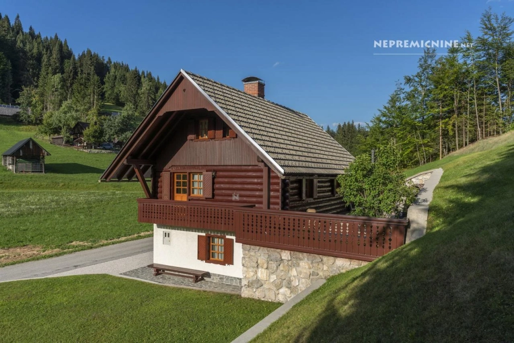 In het prachtige en beschermde natuurlijke landschap van Slovenië, in het dorp Koprivnik v Bohinju, binnen het Triglav Nationaal Park, bevindt zich deze zeldzame zelfstandige houten chalet. Gebouwd in 1997 en gelegen op een uitgestrekt perceel van 7.000 m², biedt deze woning een unieke kans voor diegenen die op zoek zijn naar een rustige en authentieke woonervaring. De chalet, met een netto vloeroppervlak van 130,7 m², is gebouwd in een rijke, traditionele houten stijl met massieve balken en zichtbare draagstructuren. De binnenkant is bekleed met massief hout, wat een tijdloze alpenarchitectuur creëert die perfect in harmonie is met de omgeving. De woning is uitzonderlijk goed onderhouden en recentelijk, in 2023, zijn de badkamer en keuken gerenoveerd om de authentieke houten kenmerken te behouden. De woning biedt een serene en comfortabele leefervaring met een centrale woonruimte die wordt aangevuld door een traditionele kachel, wat warmte en gezelligheid toevoegt. De zolderverdieping heeft twee slaapkamers die rust en privacy bieden. De woning is volledig uitgerust met moderne infrastructuur zoals centrale verwarming, elektriciteit, en een eigen septic tank. Een bijzonder kenmerk is het 55 m² grote terras met een stenen open haard, ideaal voor ontspanning en sociale bijeenkomsten. De locatie biedt een gevoel van afzondering en privacy, omringd door weiden en bosranden, zonder directe buren. Dit maakt het een ideale investering voor diegenen die op zoek zijn naar een zeldzame eigendom in een beschermd gebied, of als een privé alpen toevluchtsoord van de hoogste klasse.